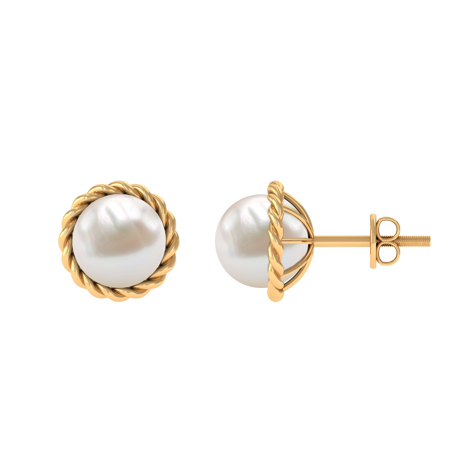 Handpicked 10MM Freshwater Pearl Stud Earrings with Rope Frame