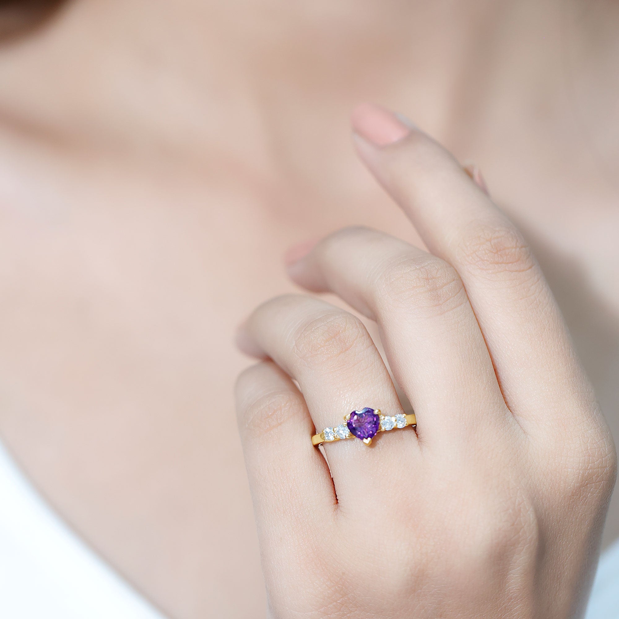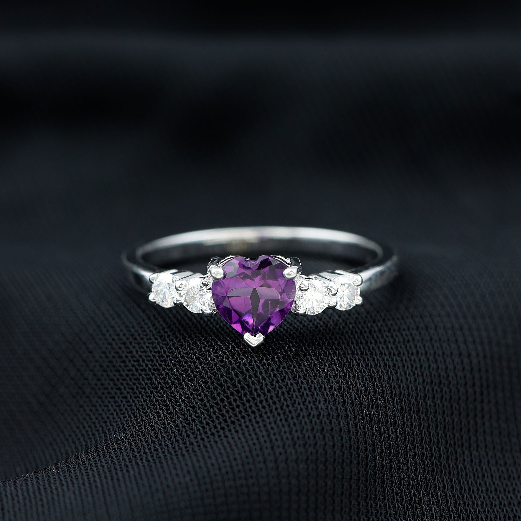 Heart Amethyst Solitaire Promise Ring with Moissanite