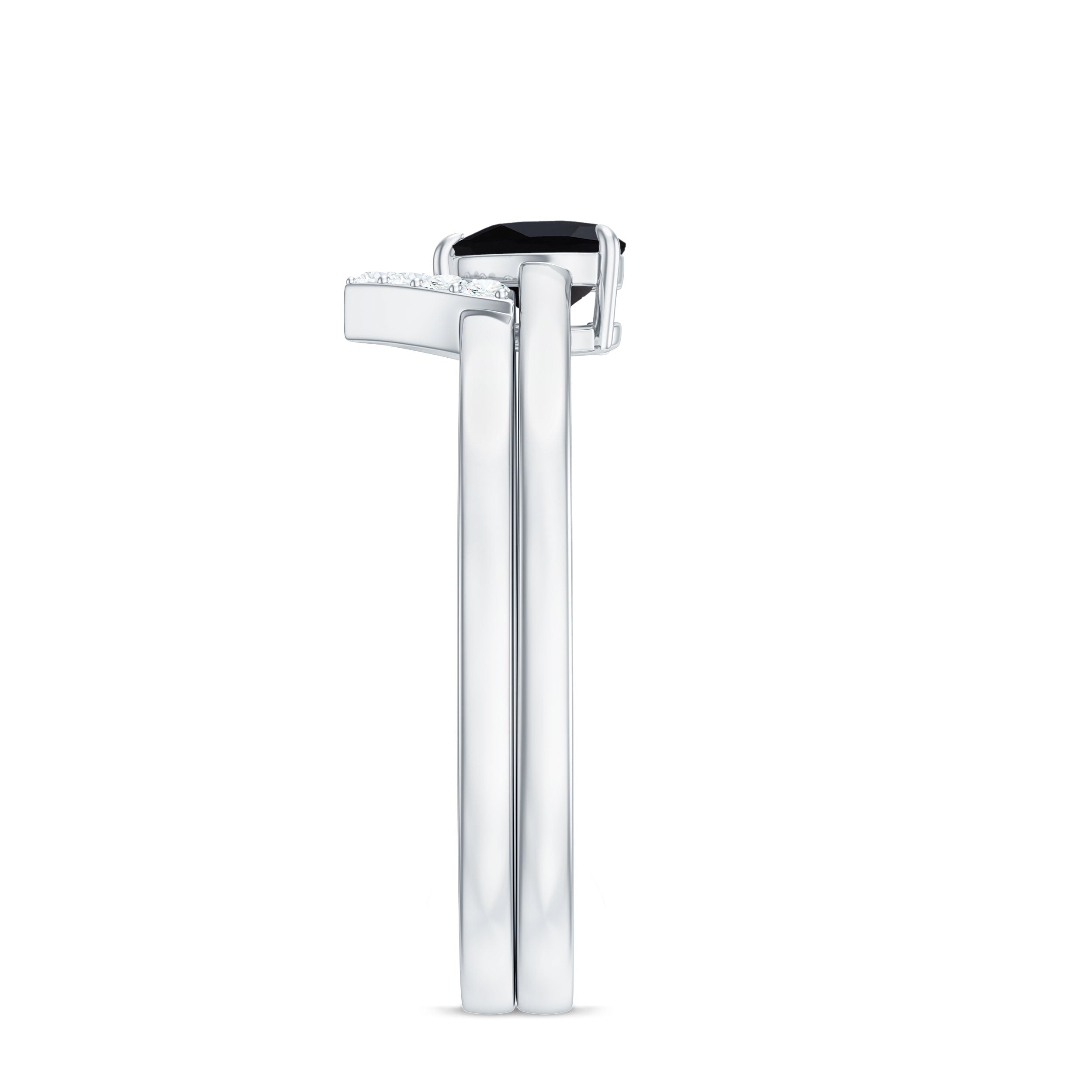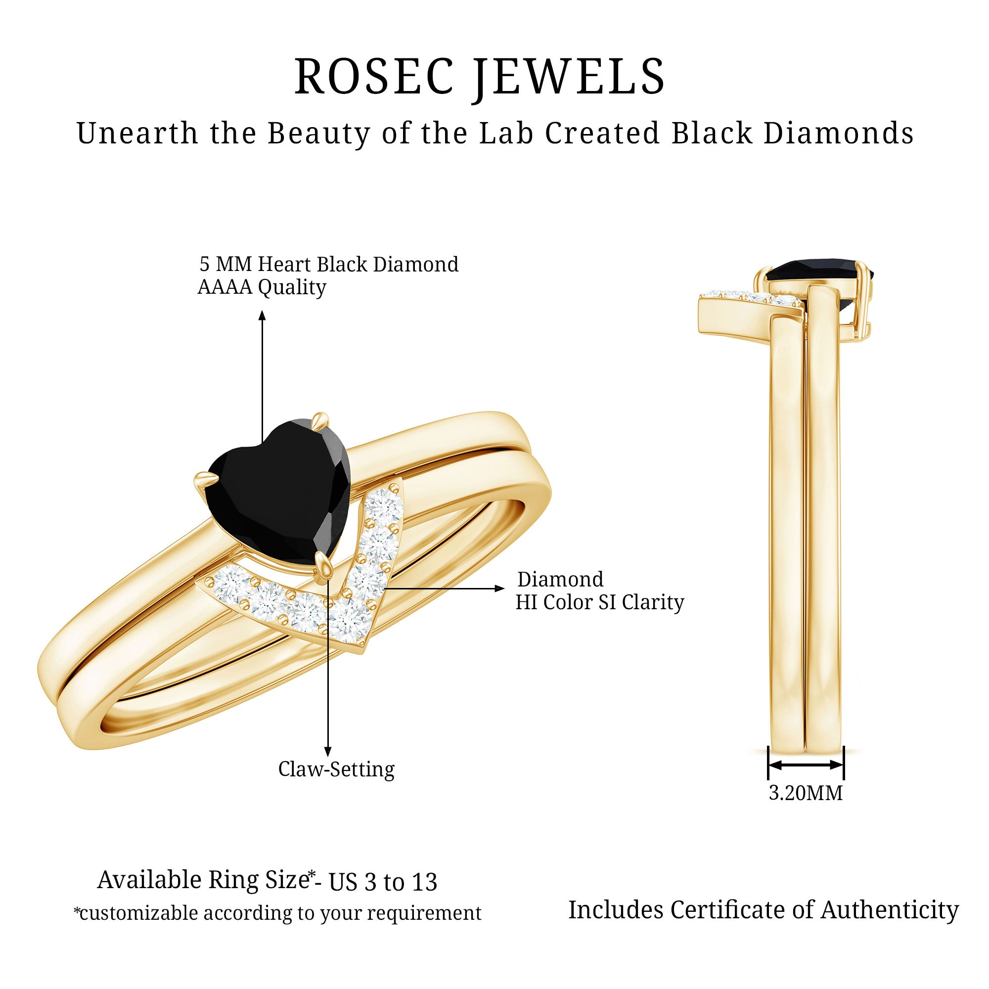 Style yourself amazingly with this Solitaire Ring Set adorned with a Heart Shape Lab Created Black Diamond secured in 3 Prong Setting while Round Shape Diamonds studded on the enhancer ring. This Created Black Diamond Ring Set will complement your every attire with ease and makes a perfect Birthday or Anniversary Gift for your beloved one.