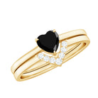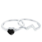 Heart Created Black Diamond Solitaire Ring Set with Diamond