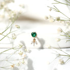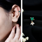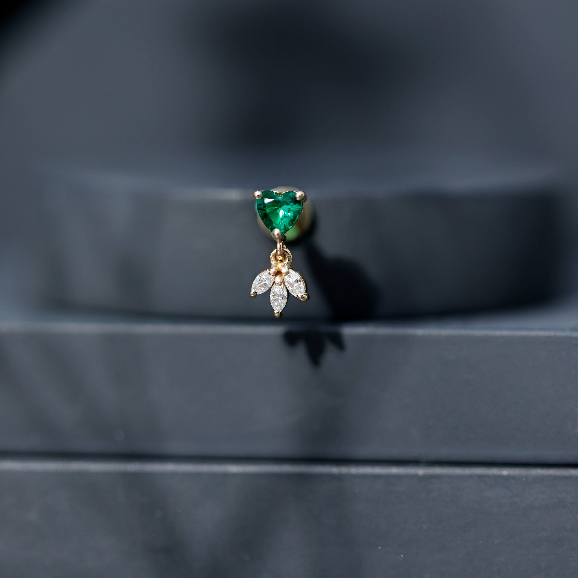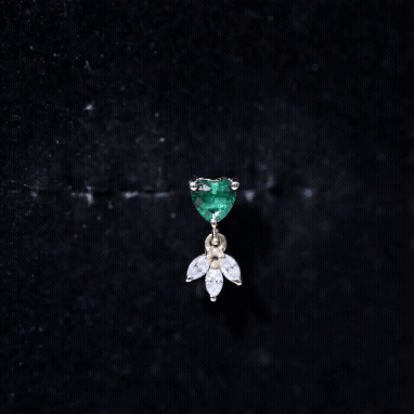 The Helix Drop Earring is a stunning piece of jewelry that combines elegance and romance. The Heart Shape Lab Created Emerald is perfectly complemented by the sparkling Marquise Cut Moissanites, creating a look thats both sophisticated and eye-catching. Wear it on your Helix, Cartilage, Tragus, or Upper Lobe Piercing and create mesmerizing looks.