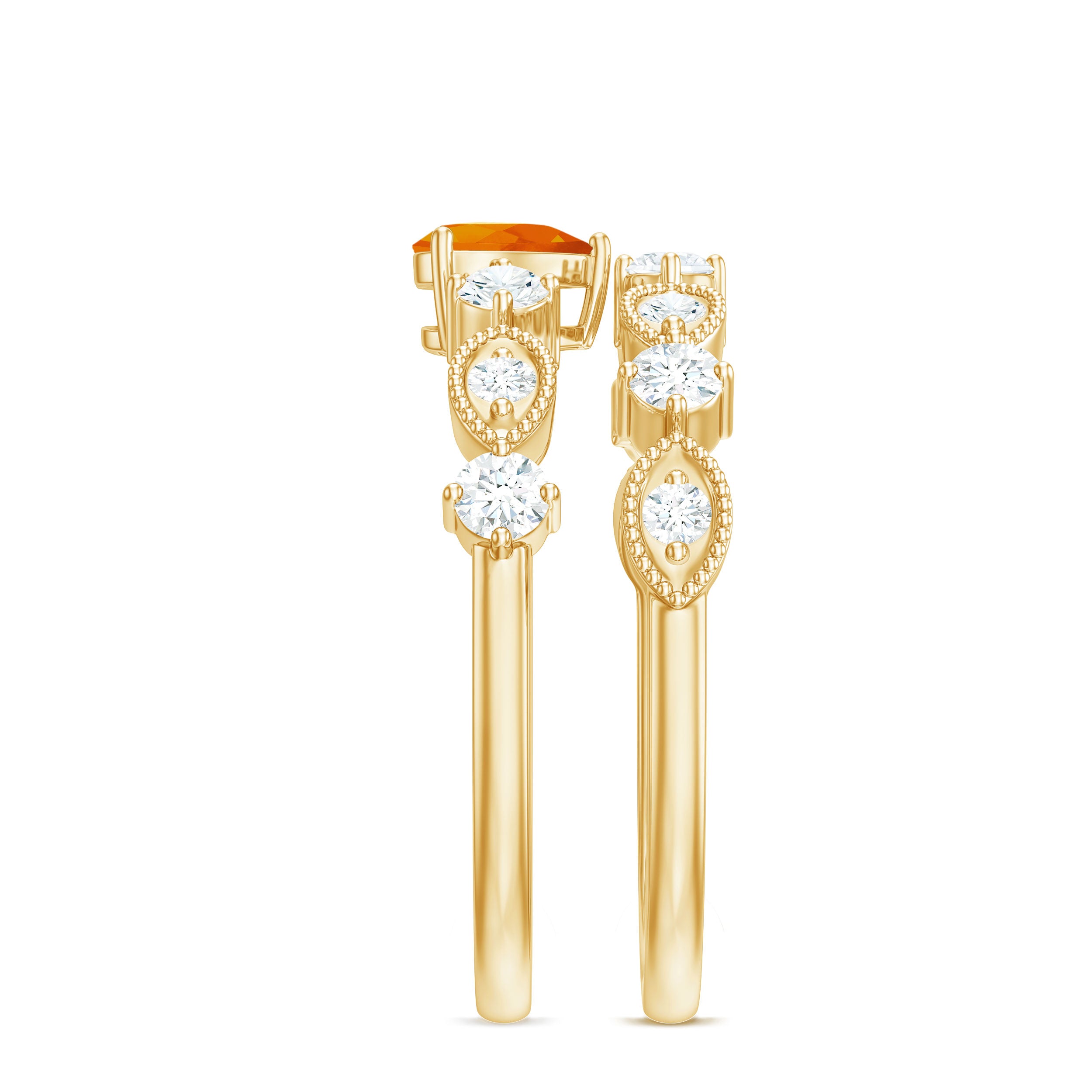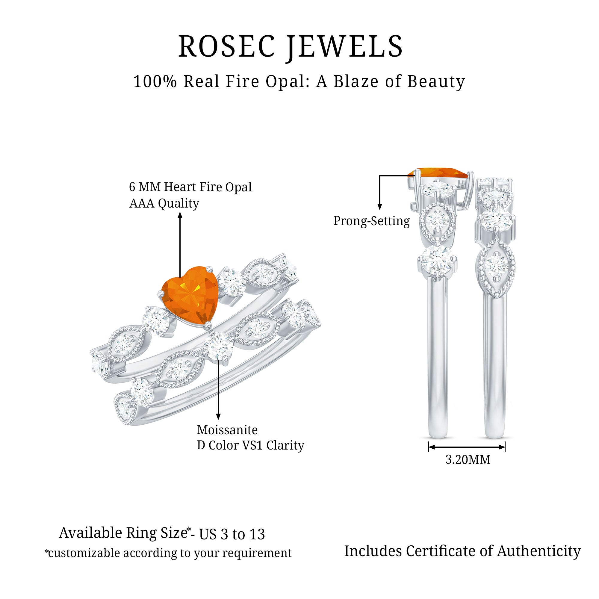 Gorgeous, isnt that? This truly amazing Bridal Wedding Ring Set has a Heart Shape Fire Opal in Prong Set with Moissanite is a perfect matching Band Set.