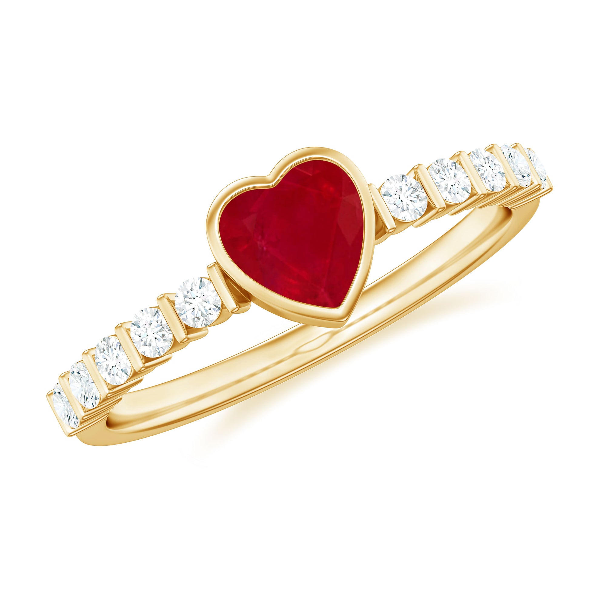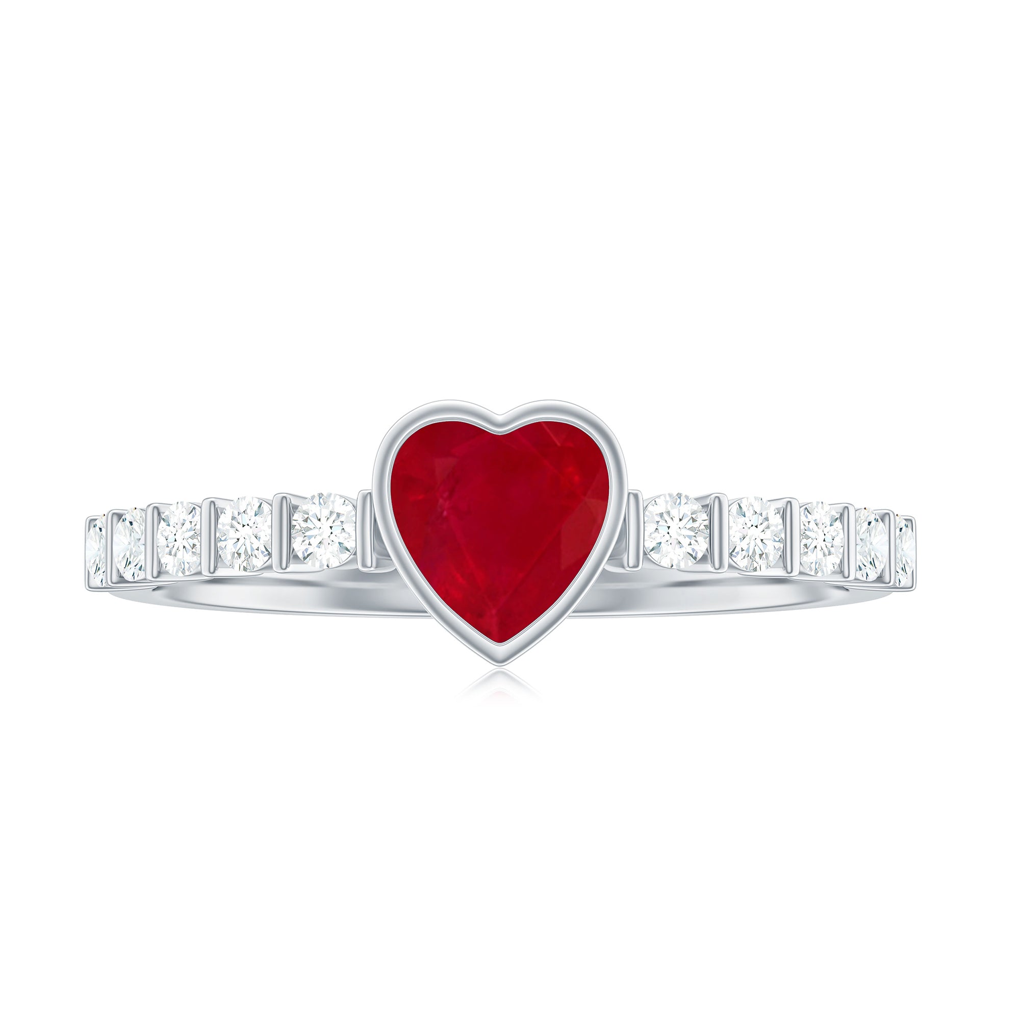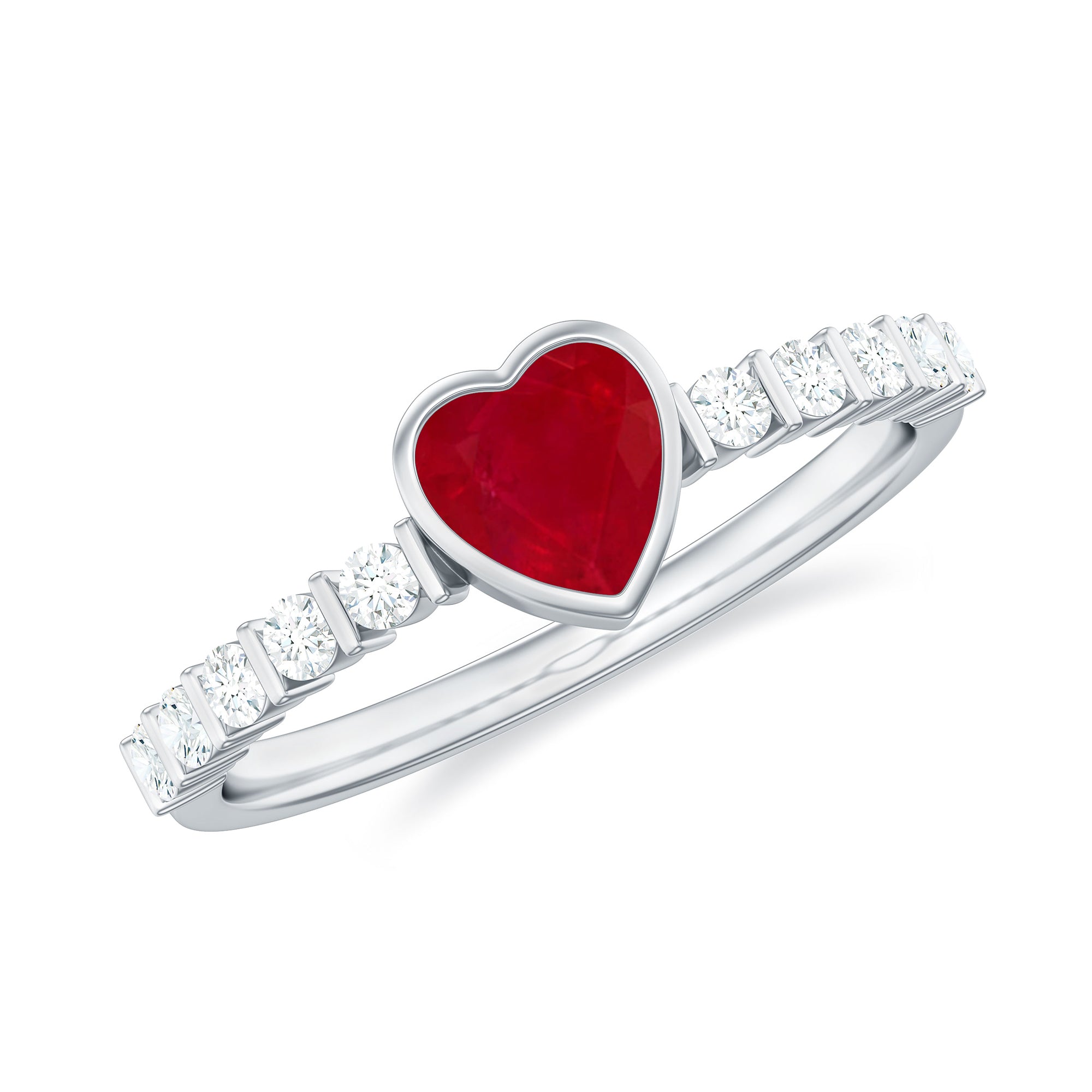 Heart Ruby Solitaire Engagement Ring with Diamond in Bezel Setting