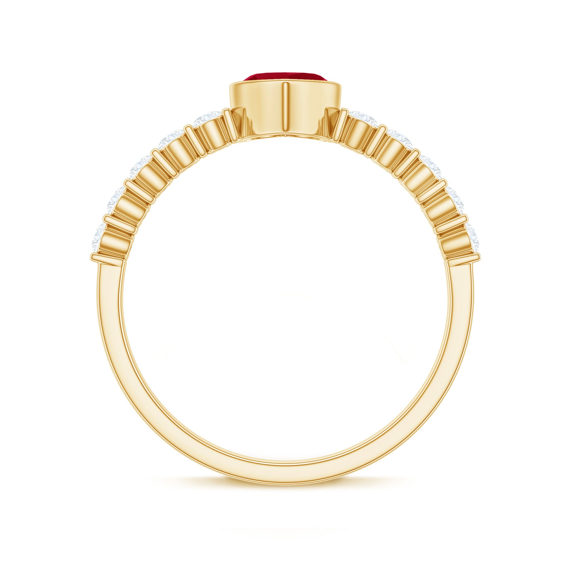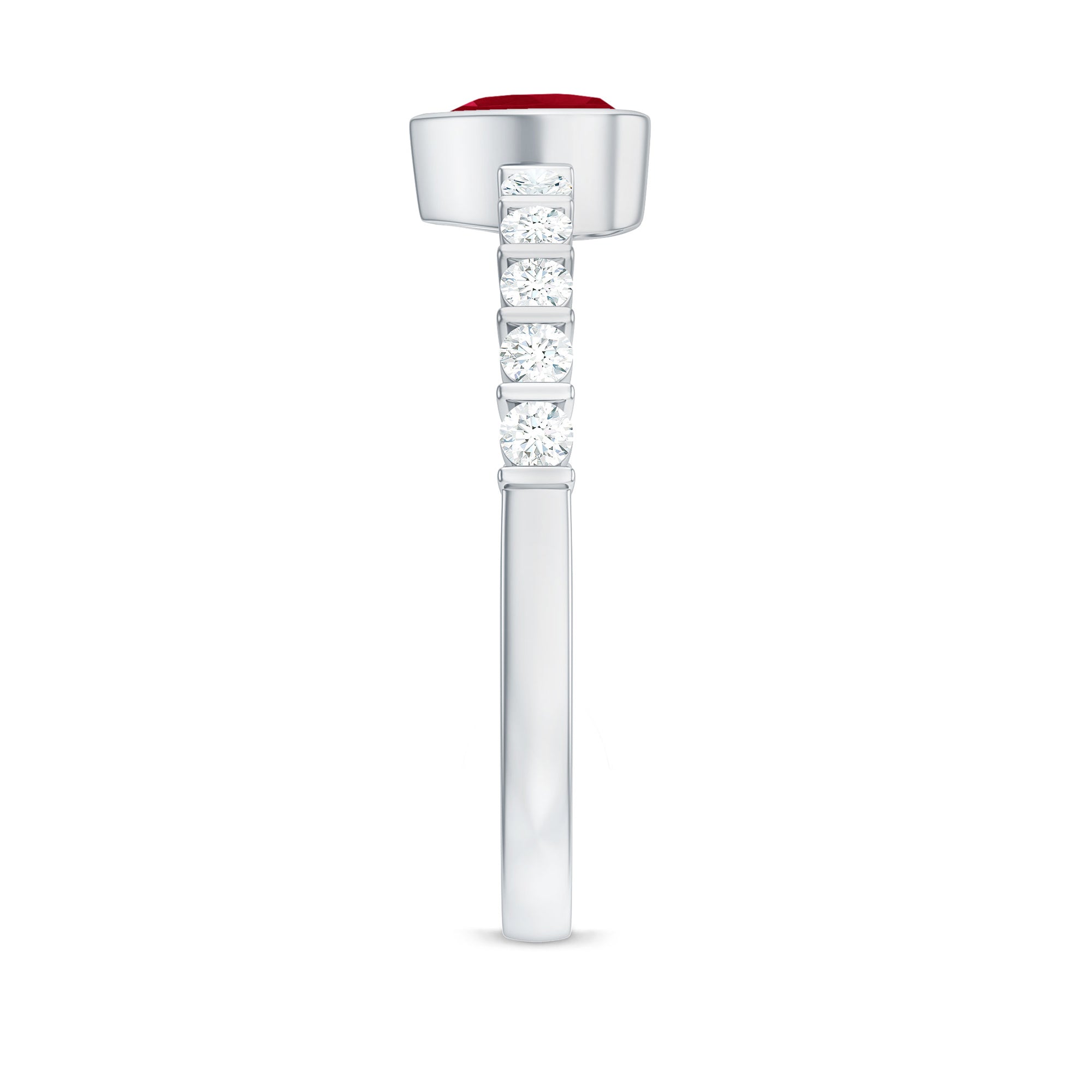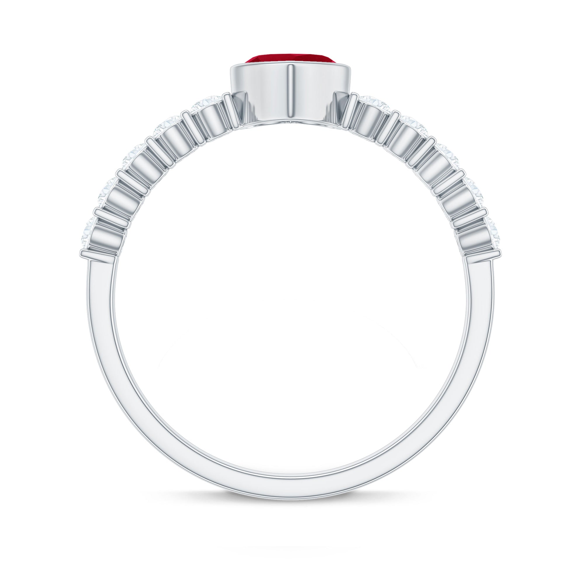 Heart Ruby Solitaire Engagement Ring with Diamond in Bezel Setting