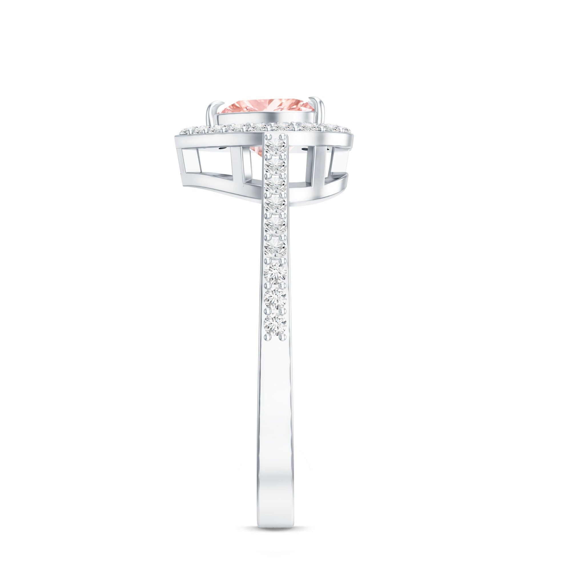 Heart Shape 1 CT Lab Grown Pink White Diamond Halo Engagement Ring