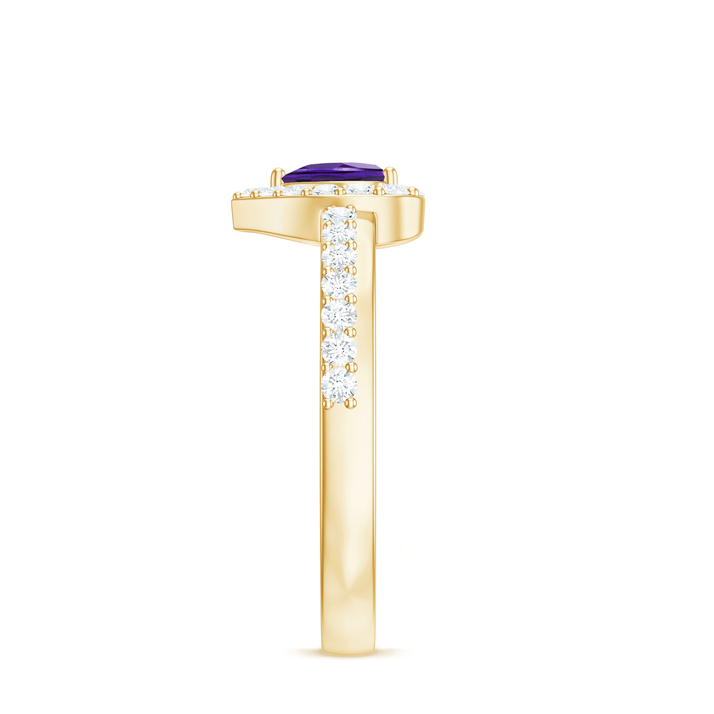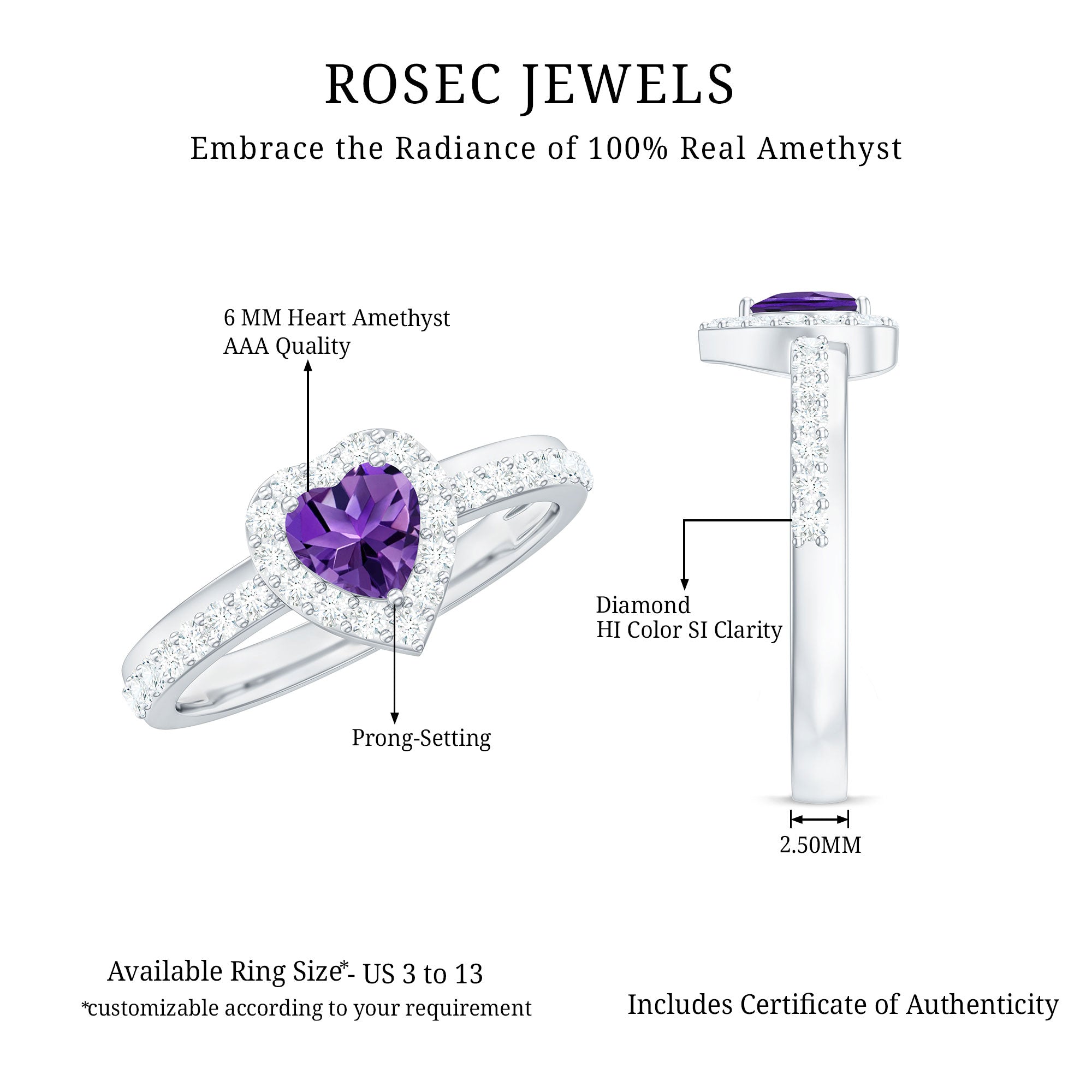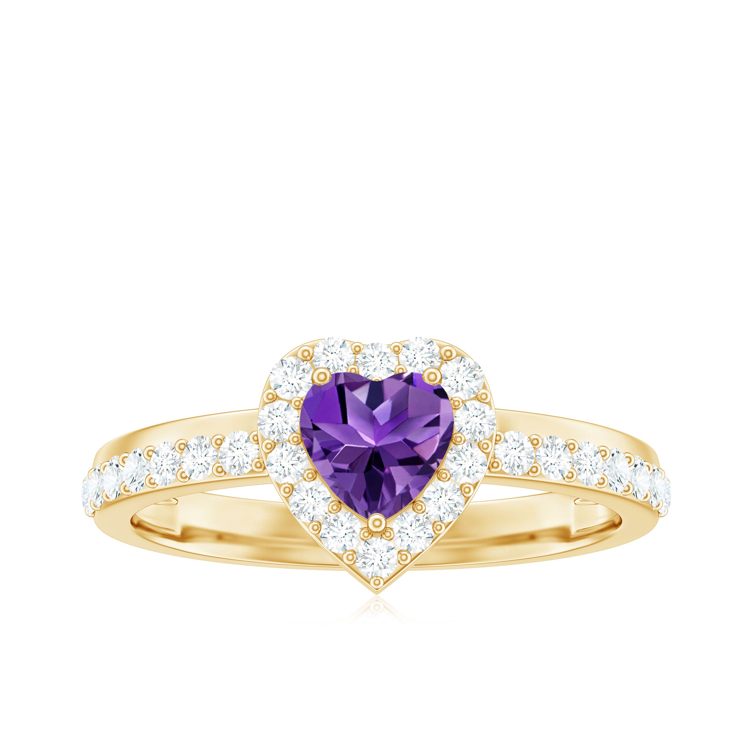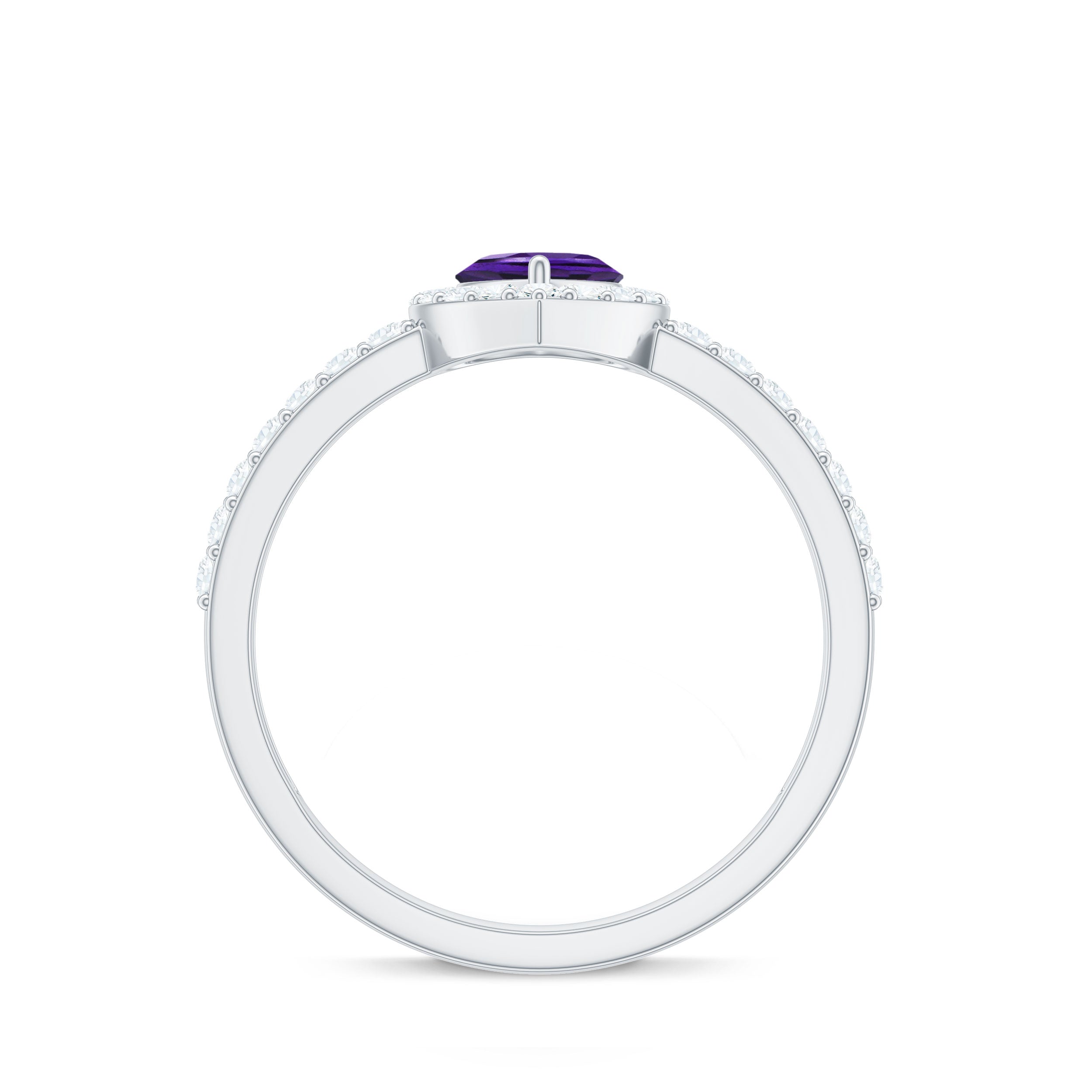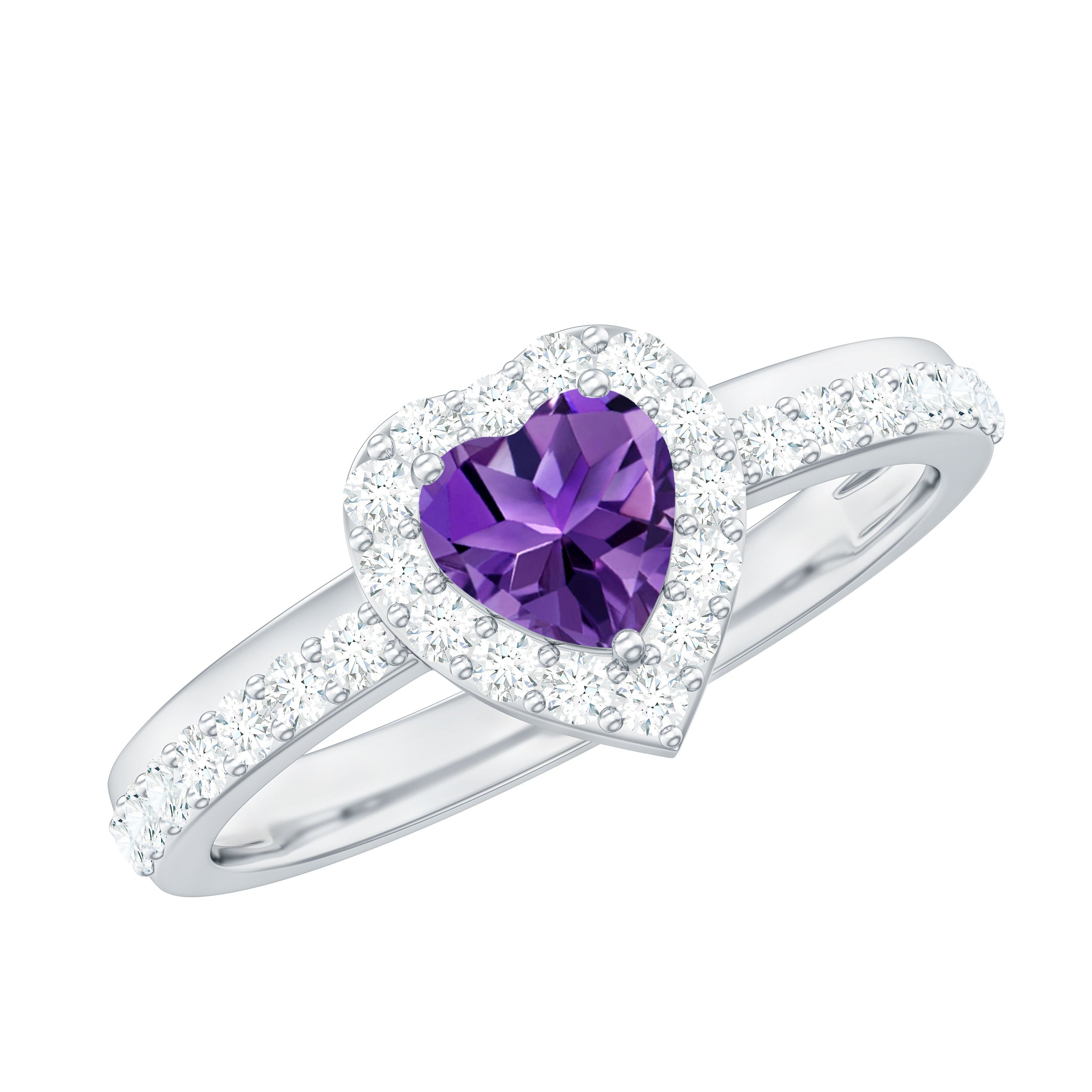 Express your love with this Heart Shape Amethyst Promise Ring adorned with a Diamond Halo. A heartfelt symbol of commitment and enchantment.