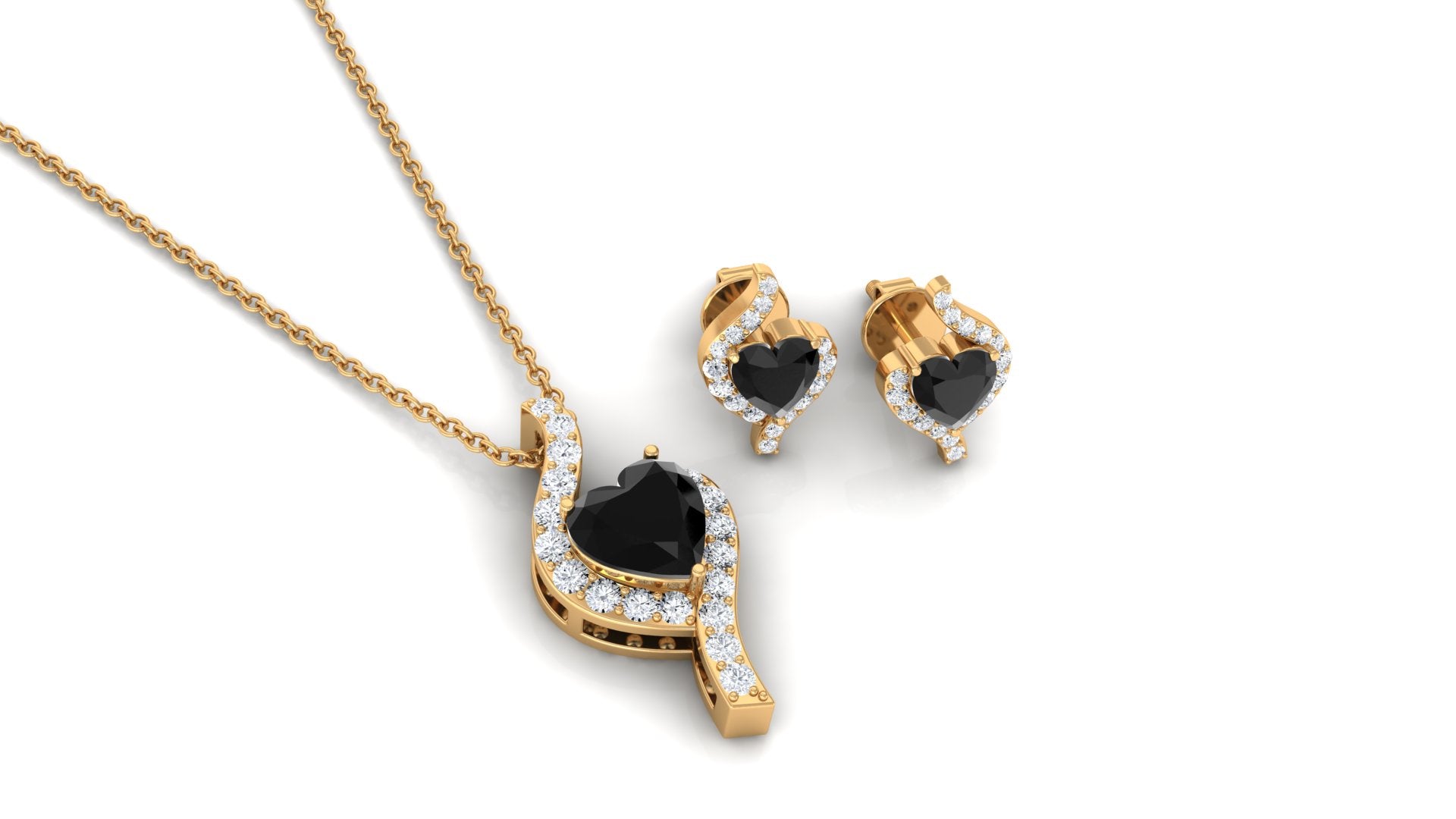 Heart Shape Black Onyx and Diamond Jewelry Set
