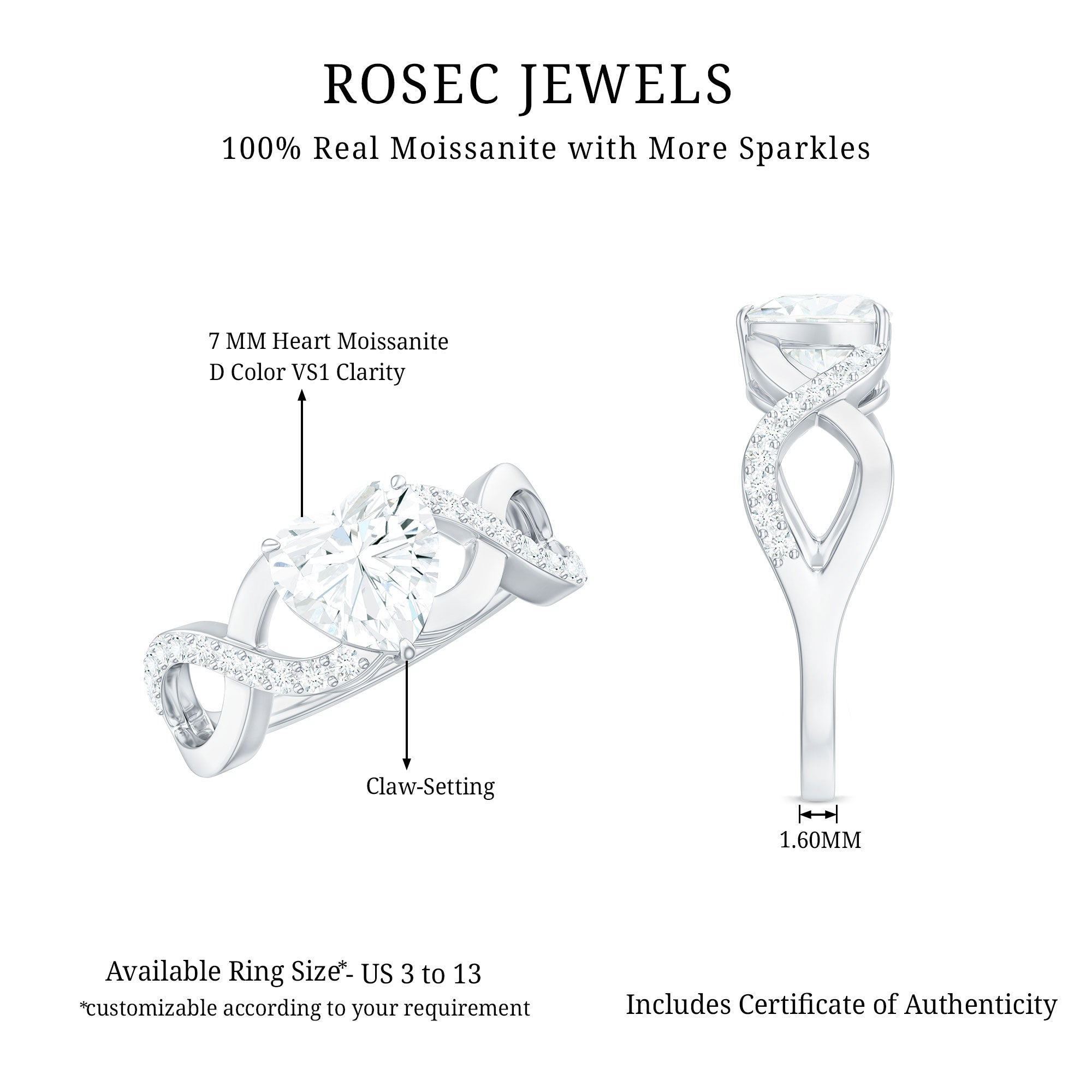 Heart Shape Certified Moissanite Infinity Style Engagement Ring