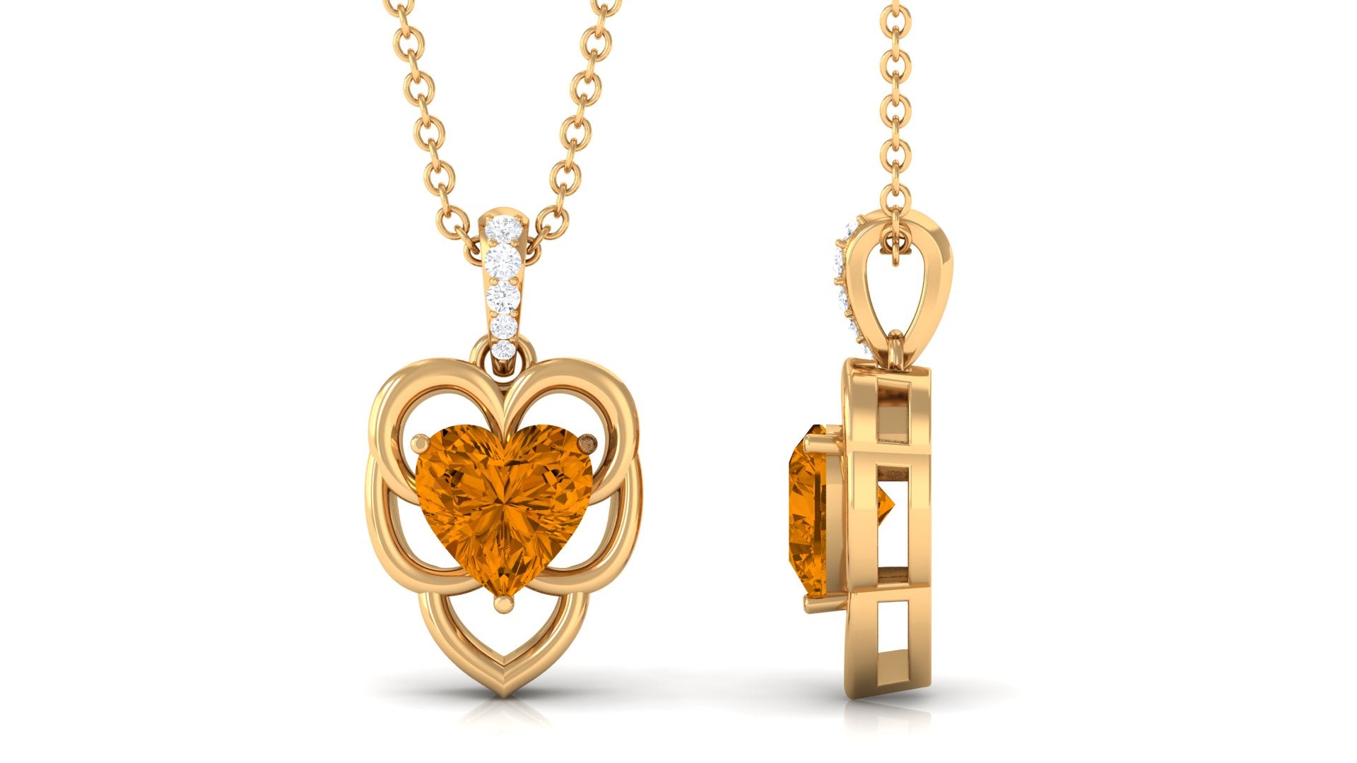 Heart Shape Citrine Pendant with Diamond Accent Bail
