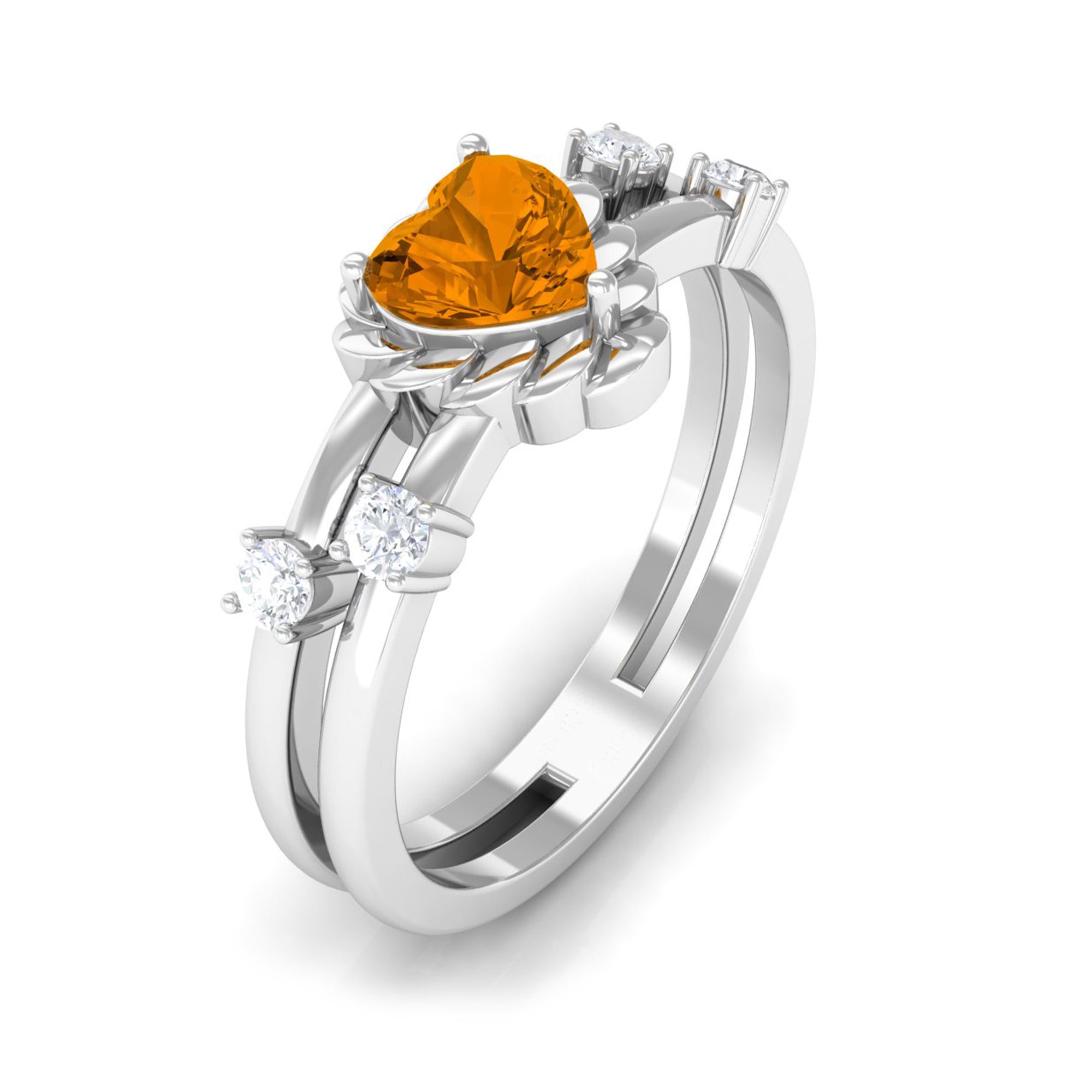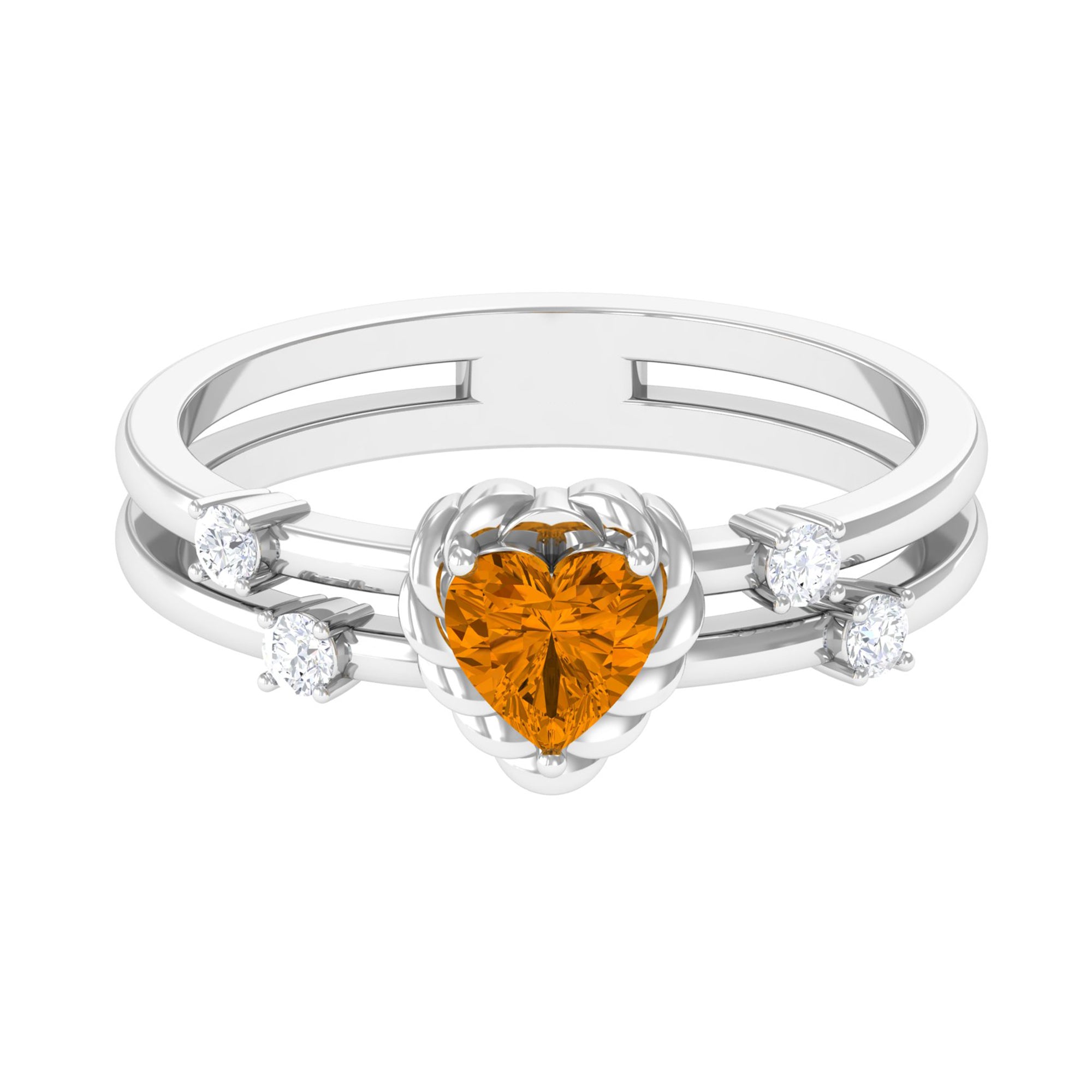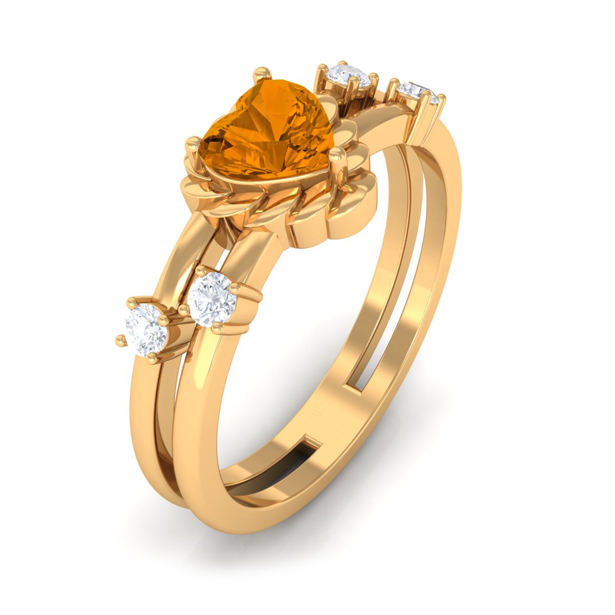Heart Shape Citrine Solitaire Double Band Ring with Diamond