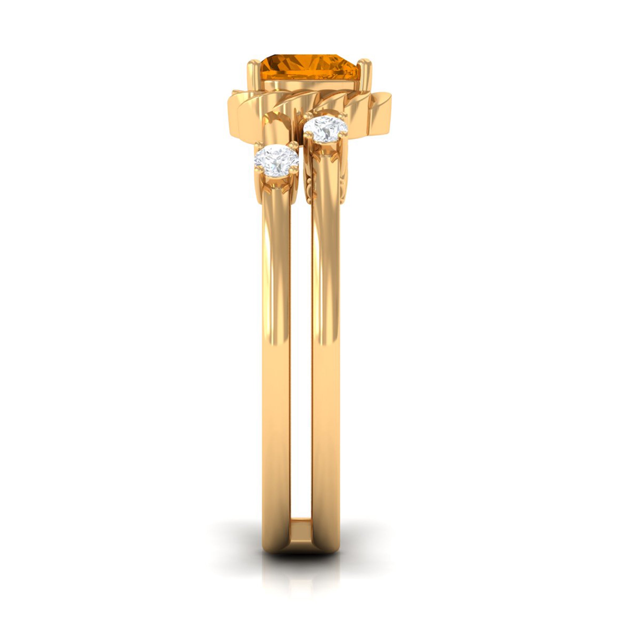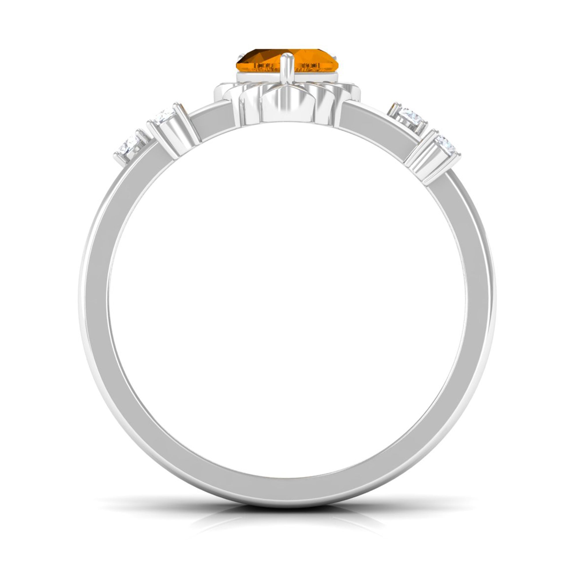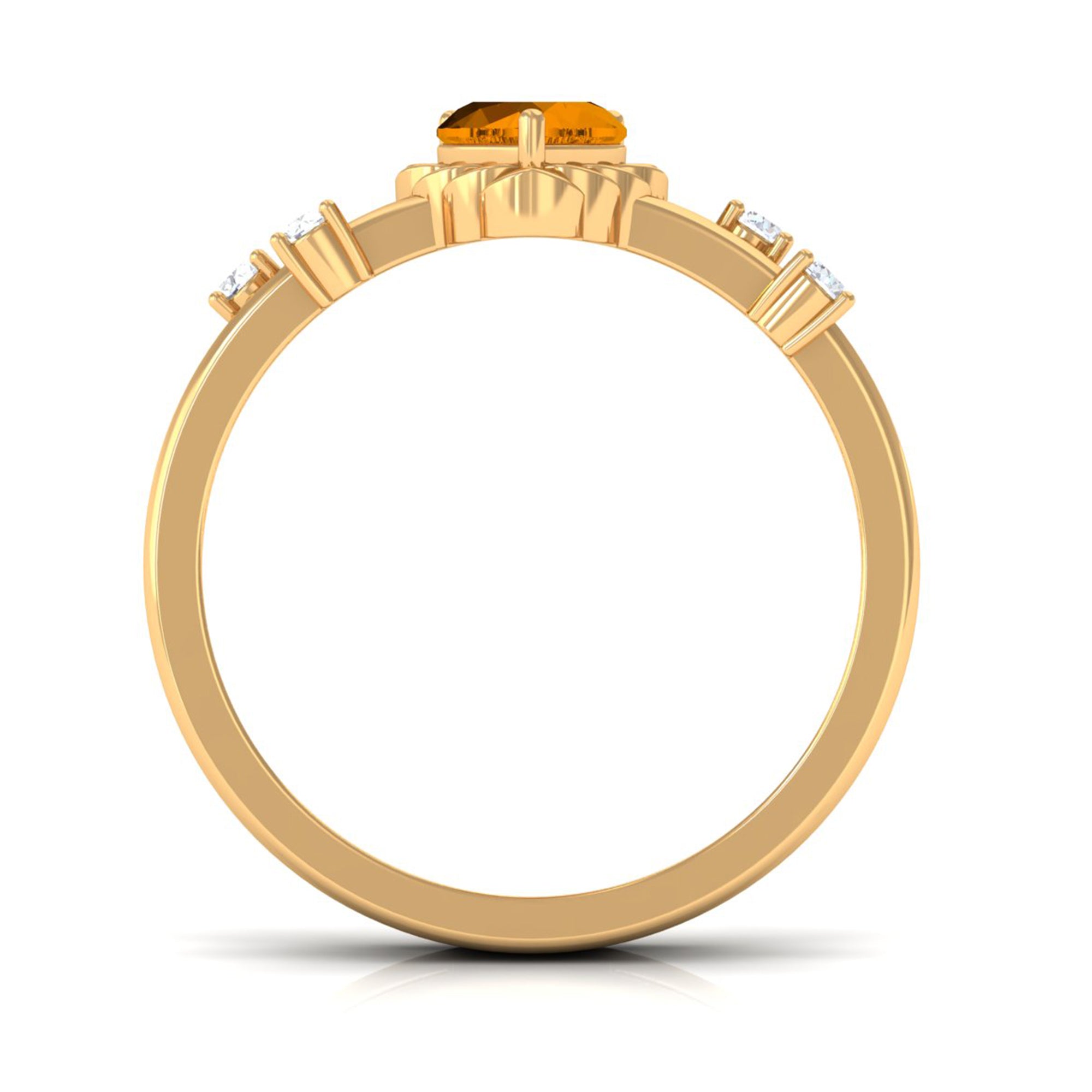 Heart Shape Citrine Solitaire Double Band Ring with Diamond