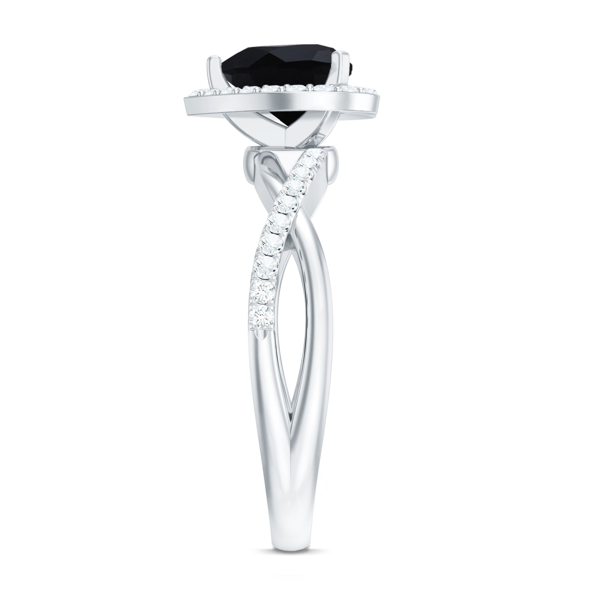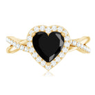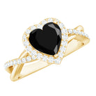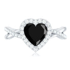 Heart Shape Created Black Diamond Crossover Engagement Ring with Diamond