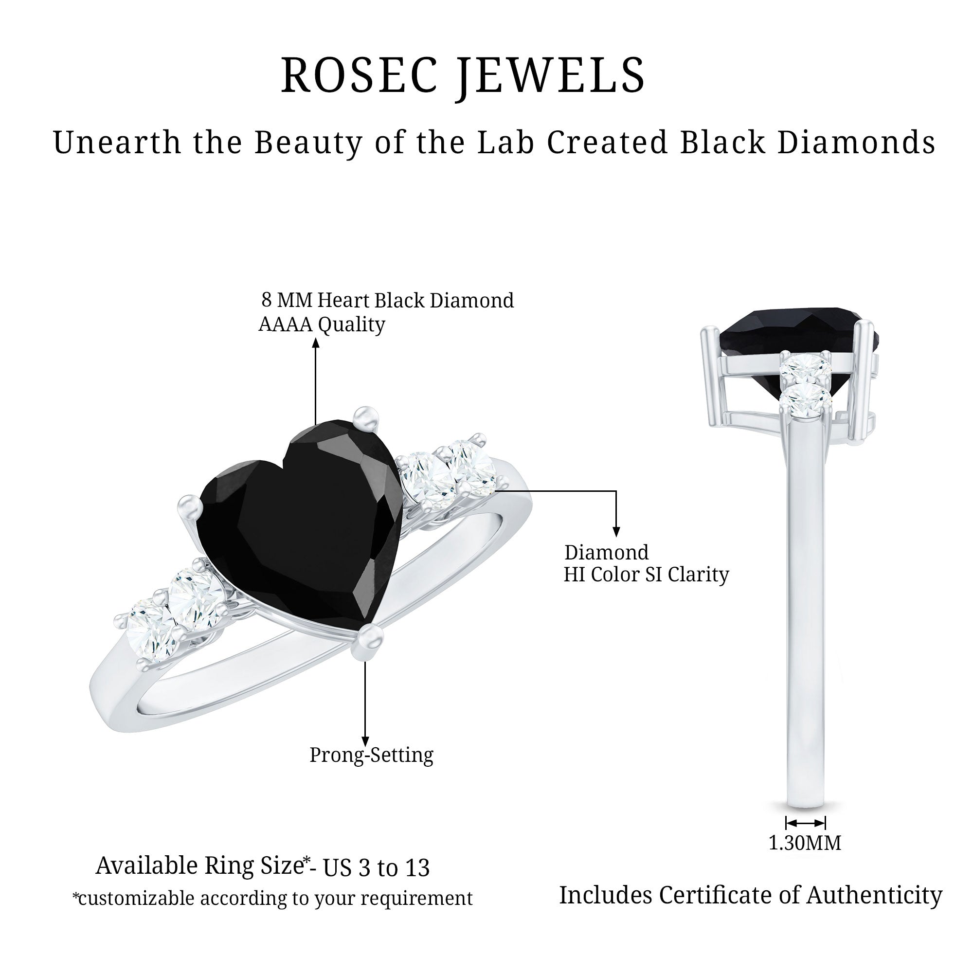 Heart Shape Created Black Diamond Solitaire Promise Ring with Diamond
