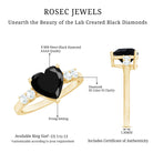 The Solitaire Promise Ring is a romantic and meaningful piece of jewelry that is perfect for a special occasion. This ring features a heart-shaped created Black Diamond in the center, with sparkling round Diamond stones on both sides. The created Black Diamond provides a bold and modern look, while the Diamond stones add extra sparkle and brilliance to the overall design. This ring is a beautiful symbol of love and commitment, making it a perfect choice for a promise or engagement ring.