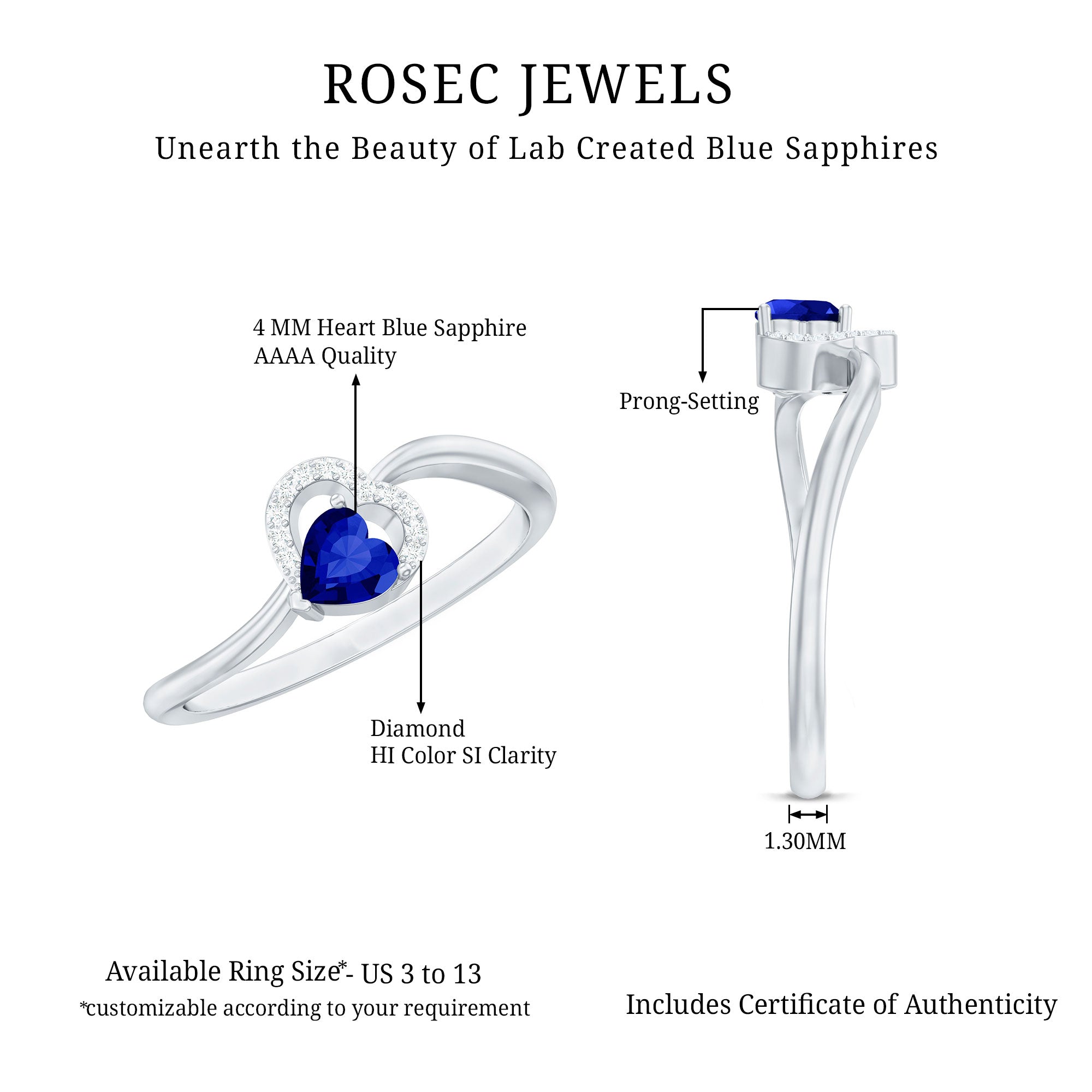 Heart Shape Created Blue Sapphire and Diamond Twisted Promise Ring