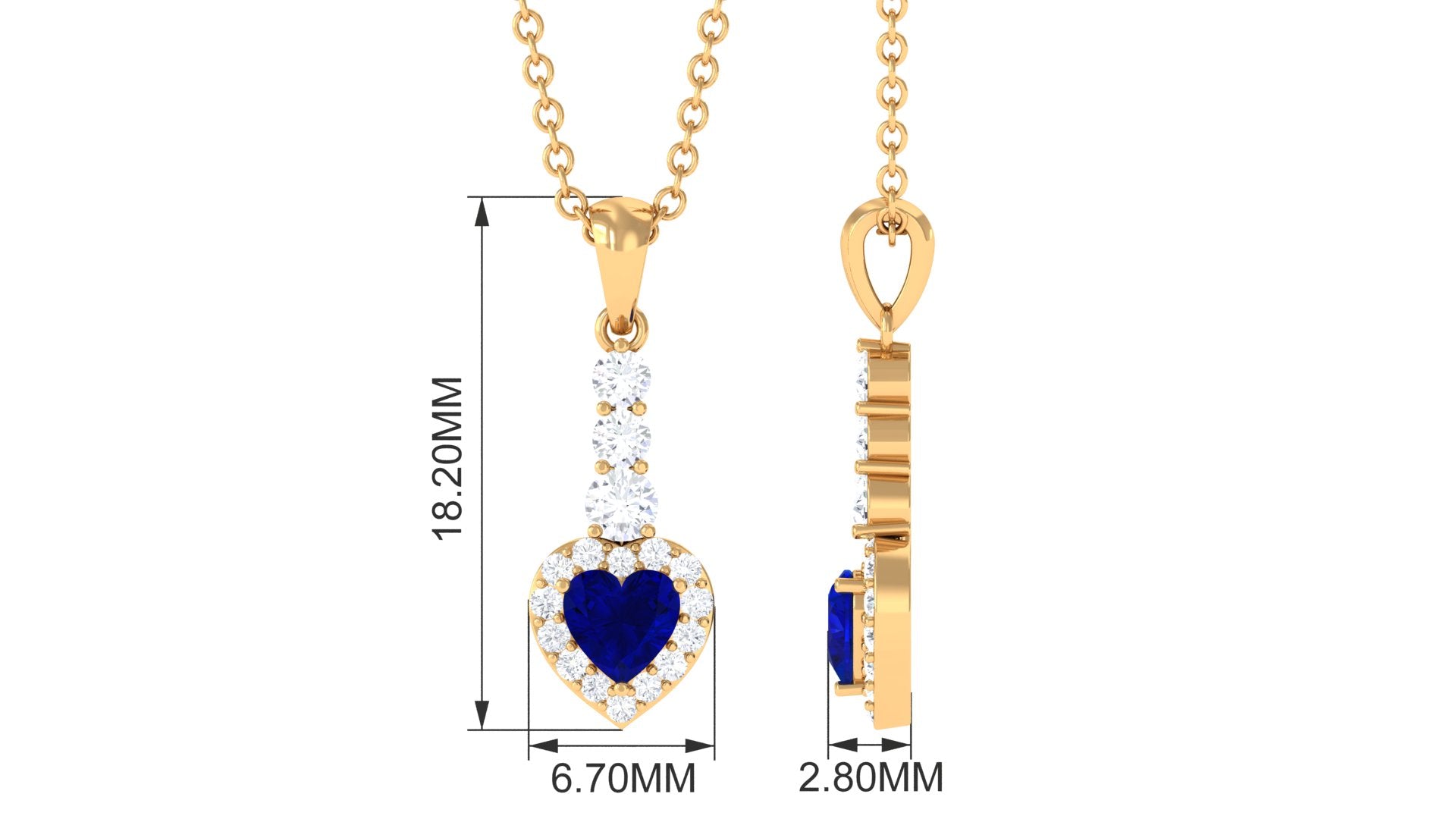 Heart Shape Created Blue Sapphire Drop Pendant Necklace with Diamond