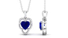 Heart Shape Created Blue Sapphire Leaf Pendant with Diamond Accent Bail