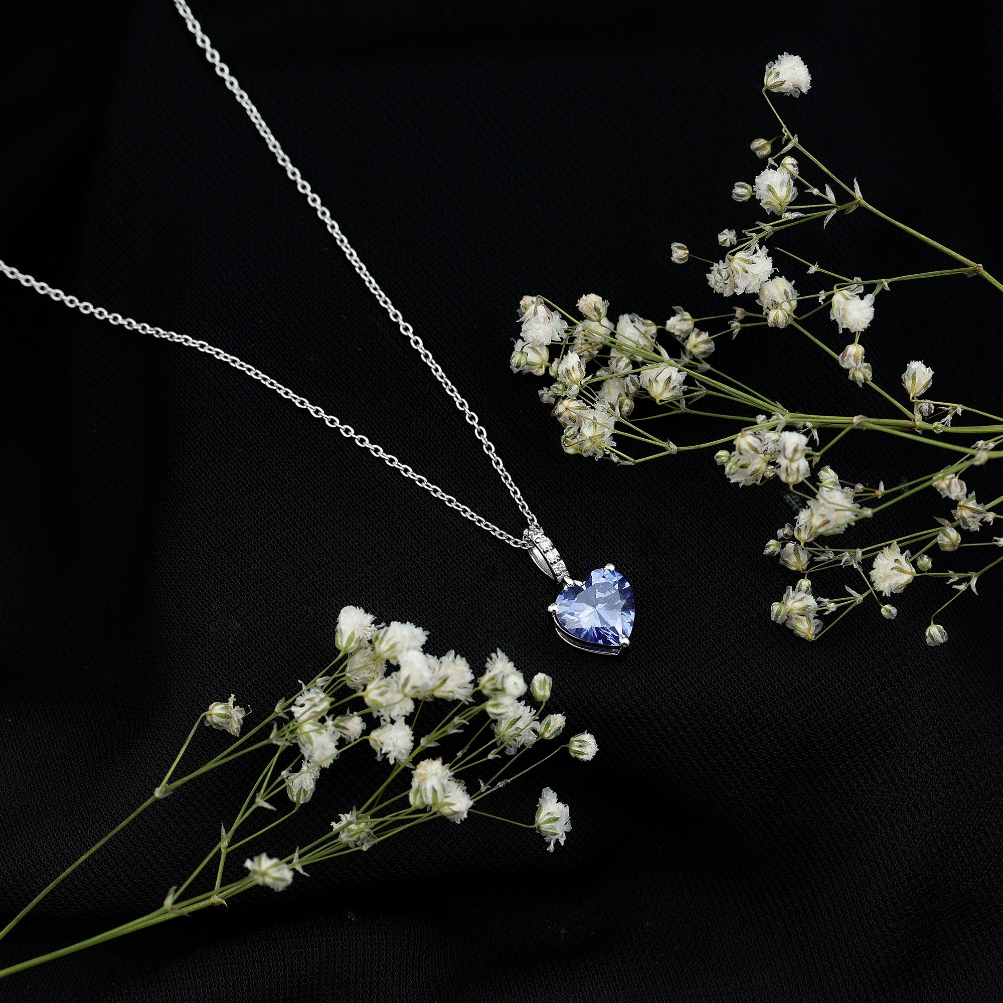 Heart Shape Created Blue Sapphire Solitaire Pendant with Diamond Accent Bail