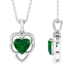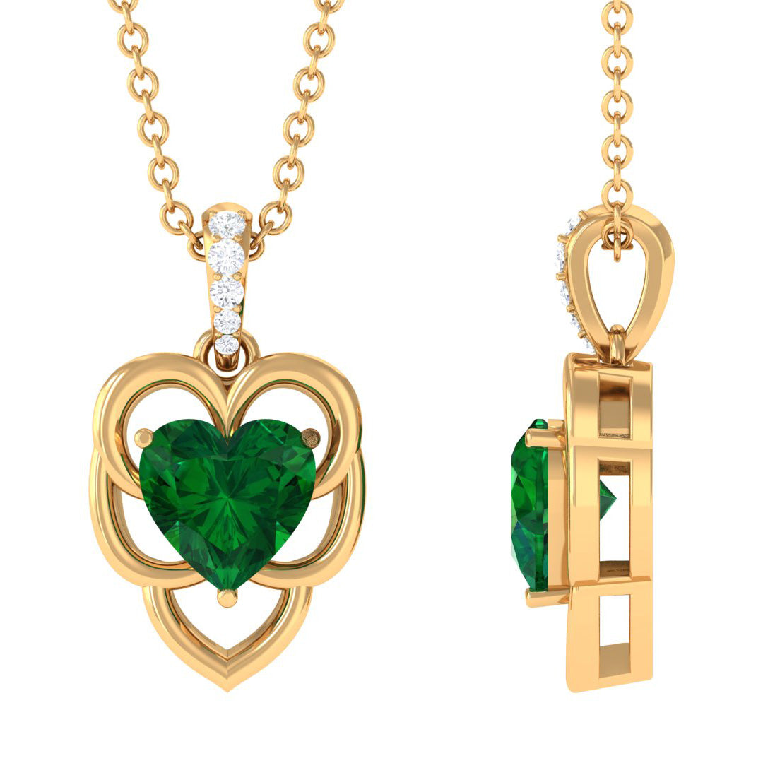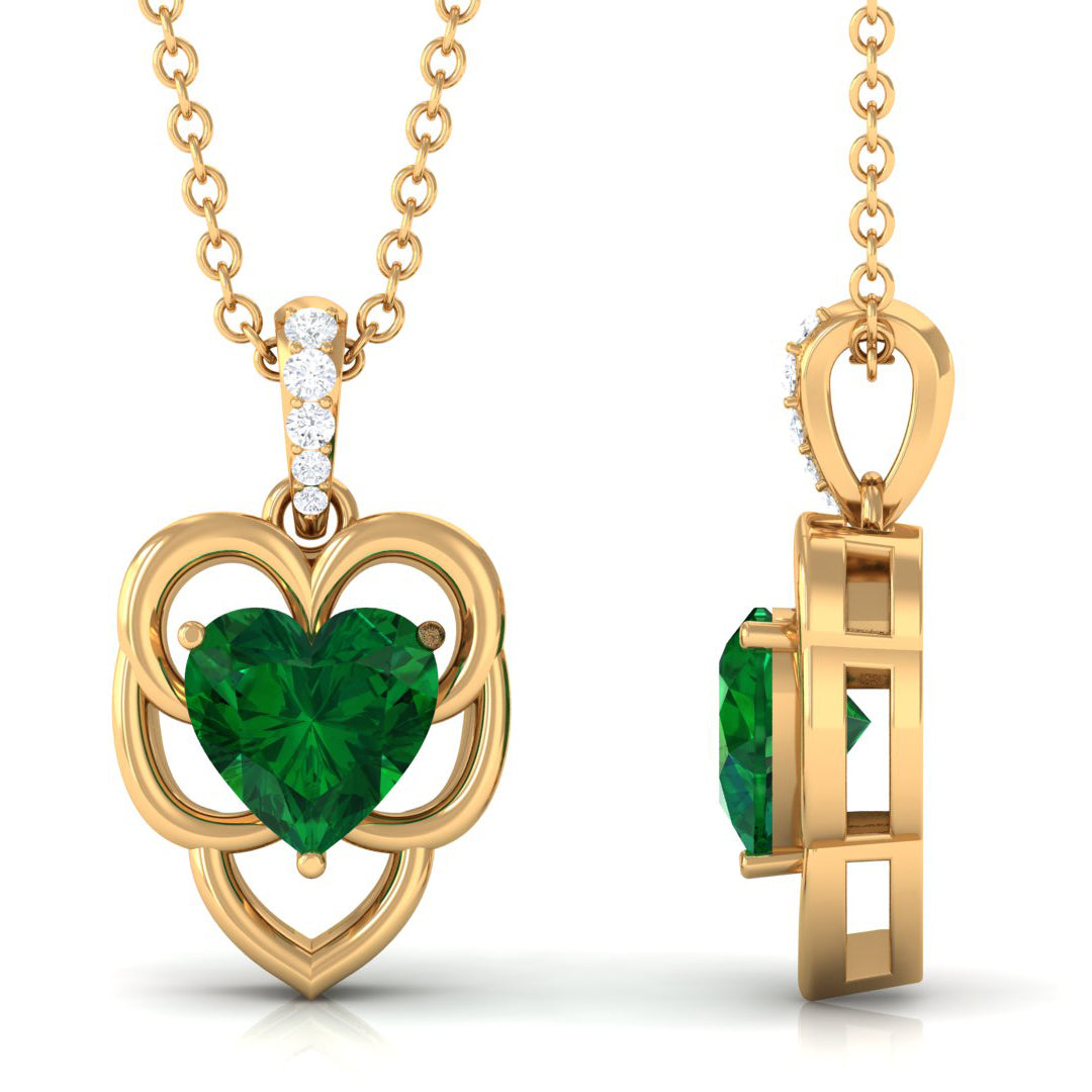Heart Shape Created Emerald Leaf Pendant with Diamond Accent Bail