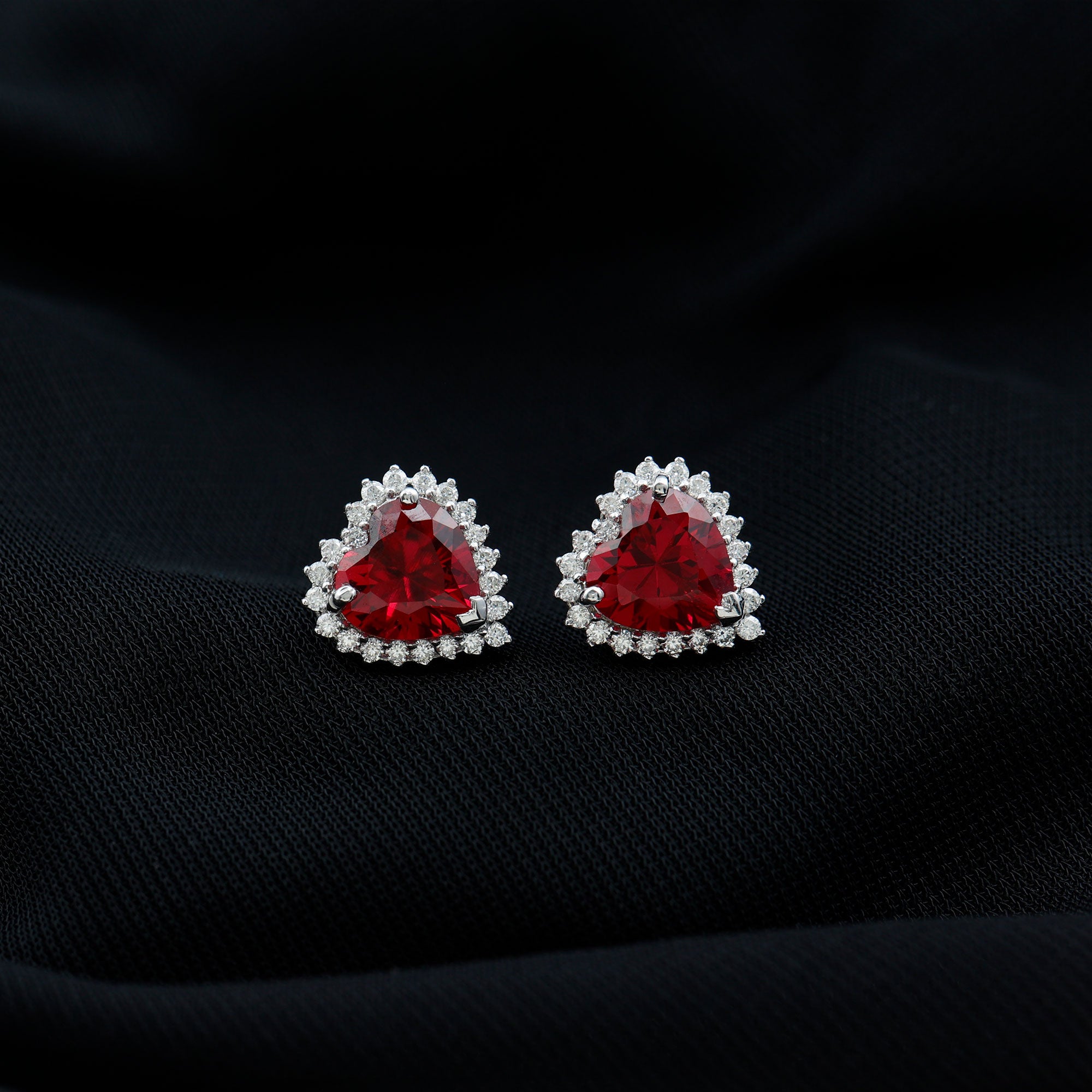 Created Ruby Heart Stud Earrings with Diamond Halo