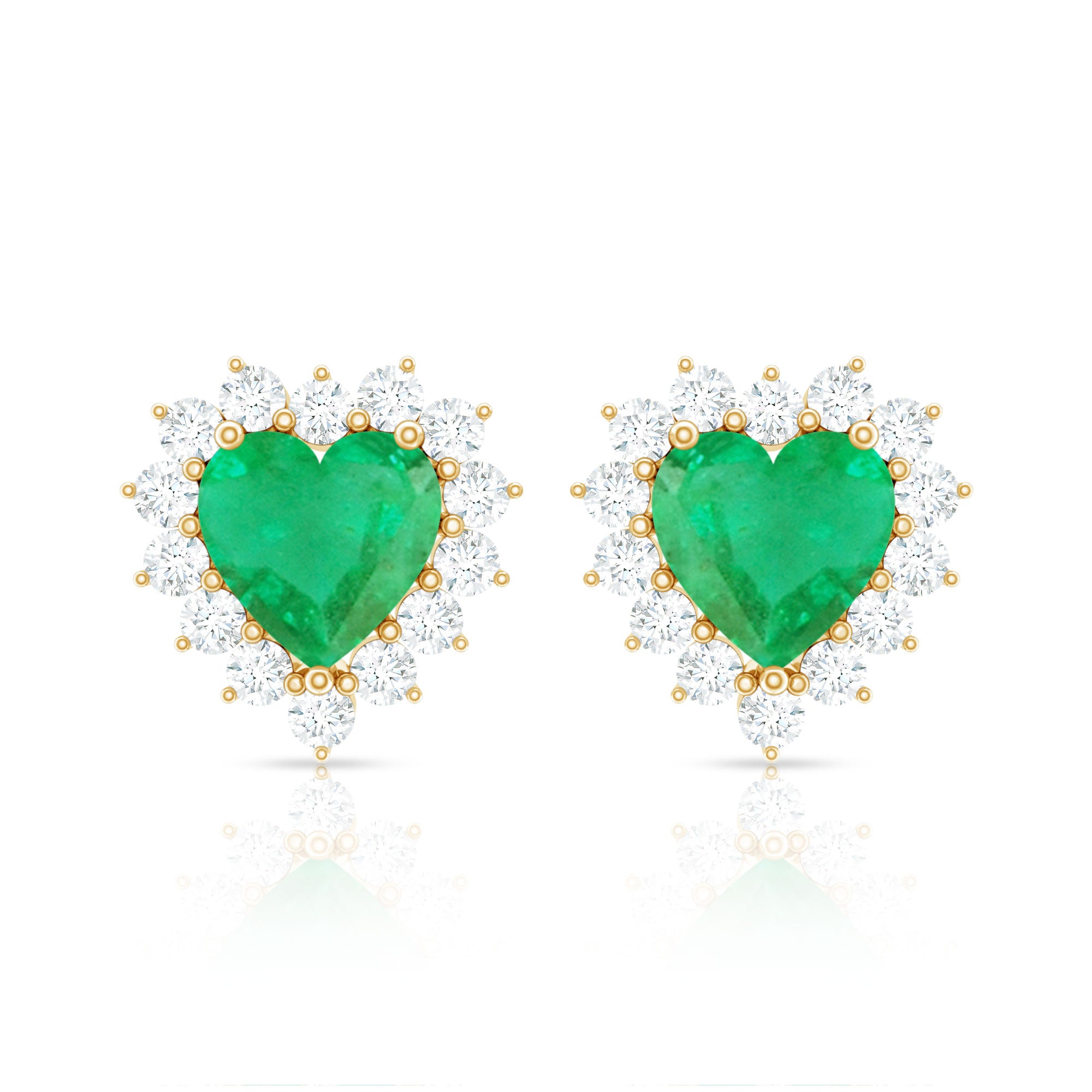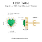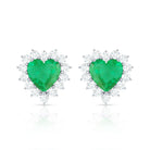 Heart Shape Emerald Stud Earrings with Diamond