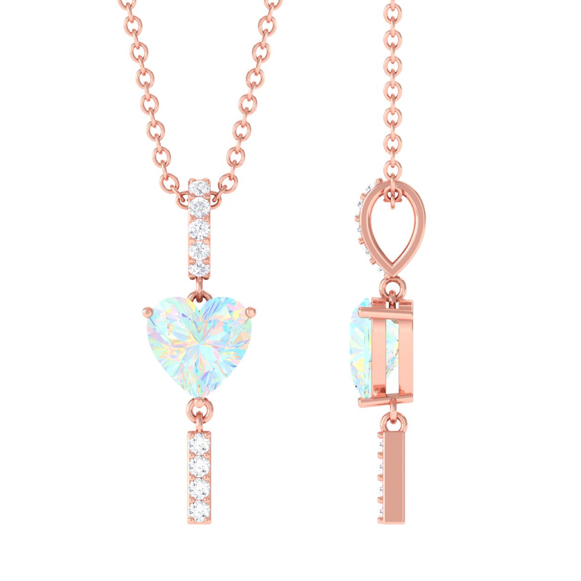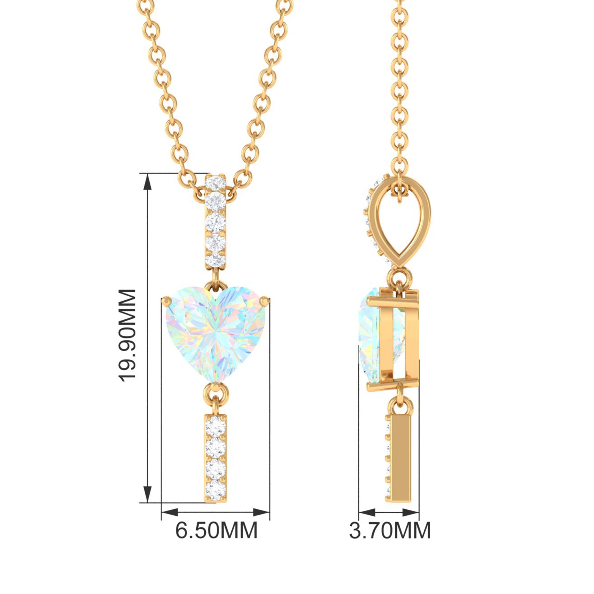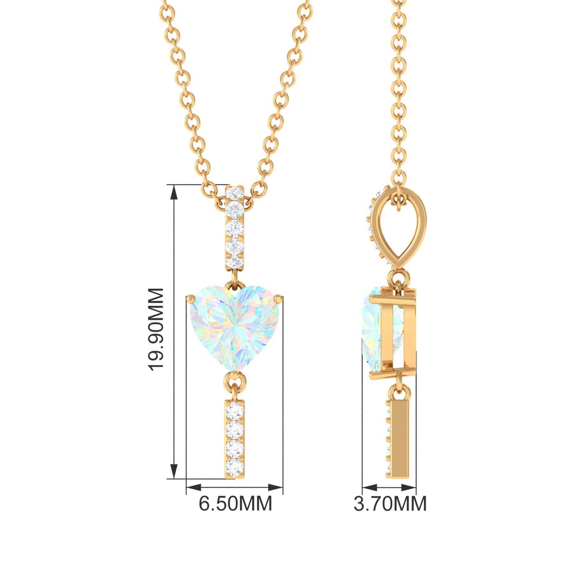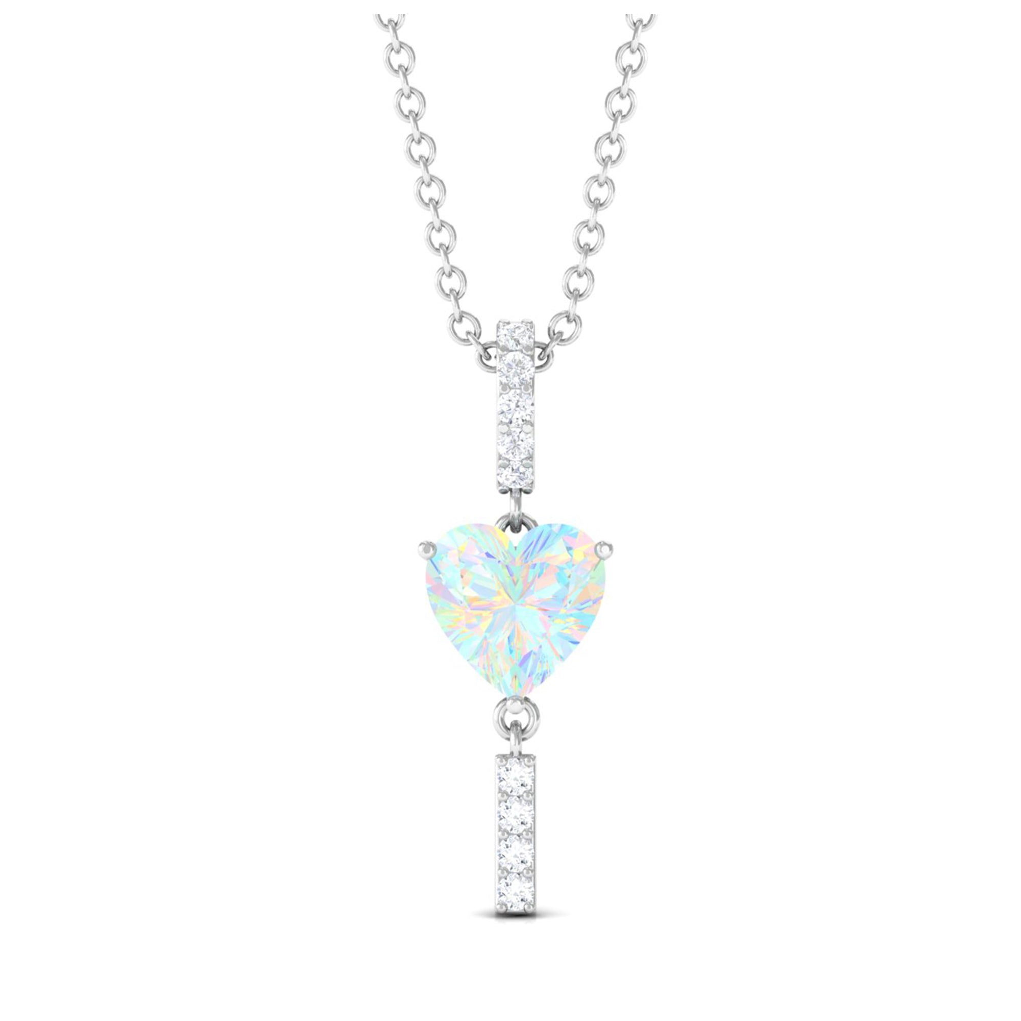 Sparkling in the amidst this Heart Shape Ethiopian Opal securely held in Prong Setting gives a luxurious appeal to this Pendant. The Round Diamond set as Drop on the bar looks just fab on Solitaire Pendant. For every occasion or for every night out this Opal Pendant is a perfect jewelry thus creates a unique look.