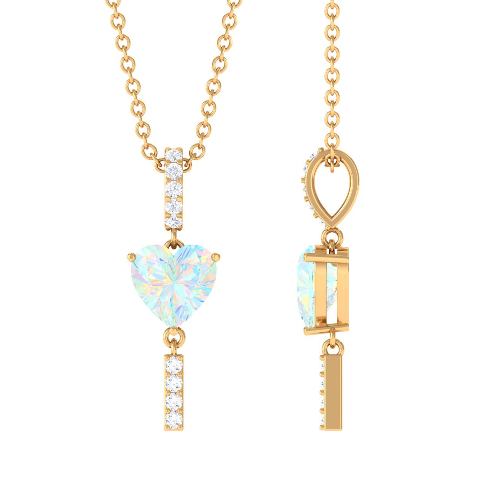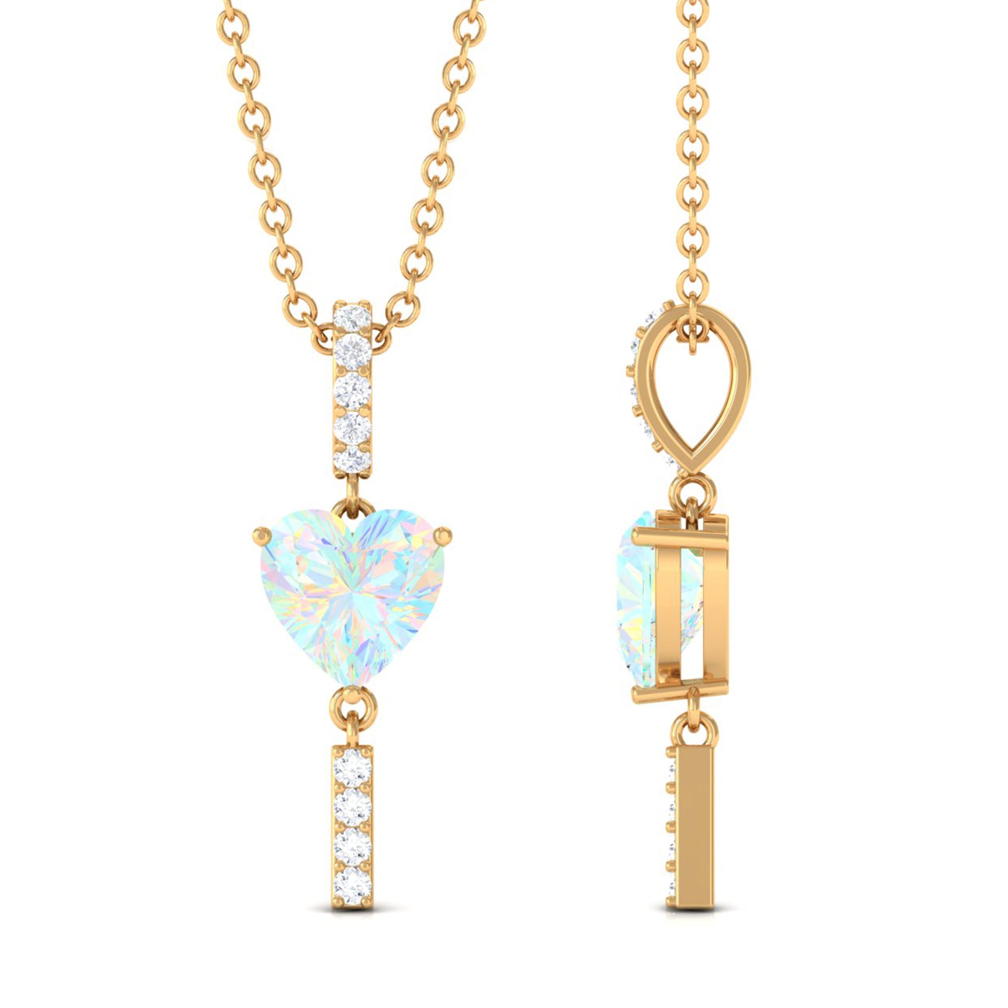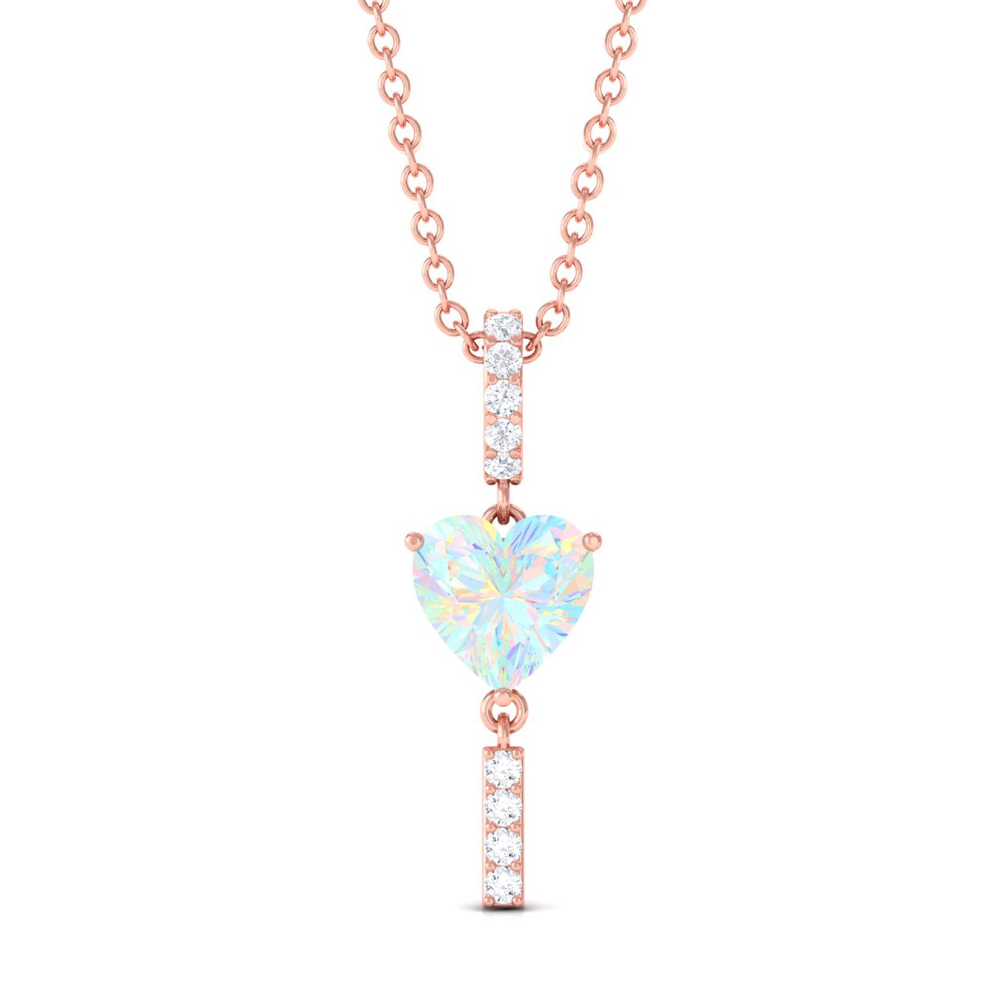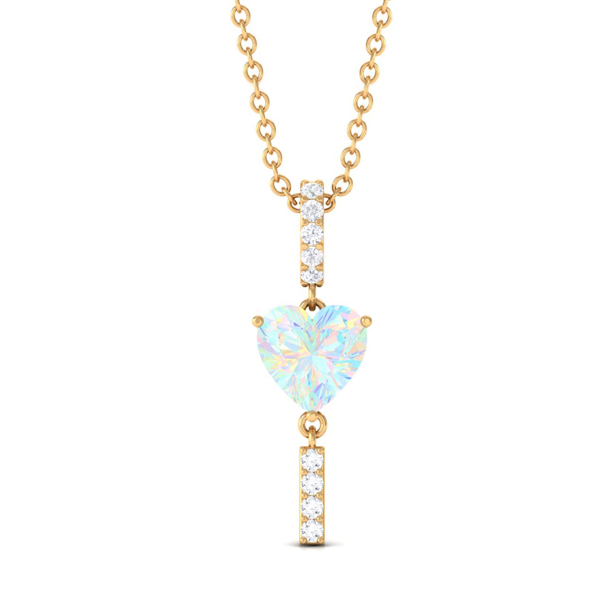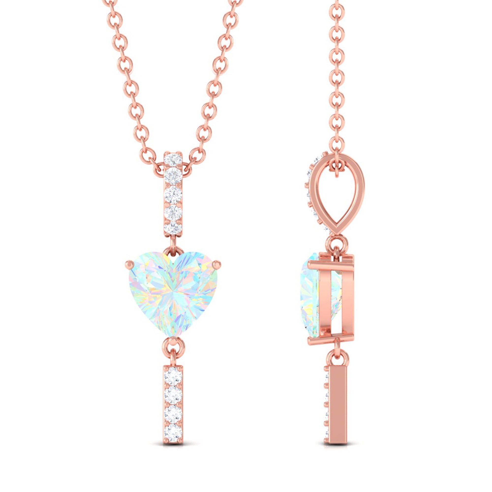 Sparkling in the amidst this Heart Shape Ethiopian Opal securely held in Prong Setting gives a luxurious appeal to this Pendant. The Round Diamond set as Drop on the bar looks just fab on Solitaire Pendant. For every occasion or for every night out this Opal Pendant is a perfect jewelry thus creates a unique look.