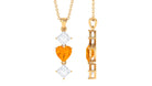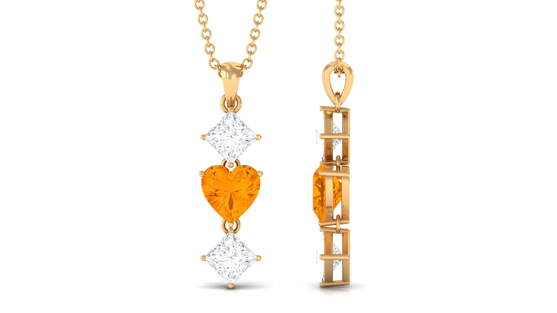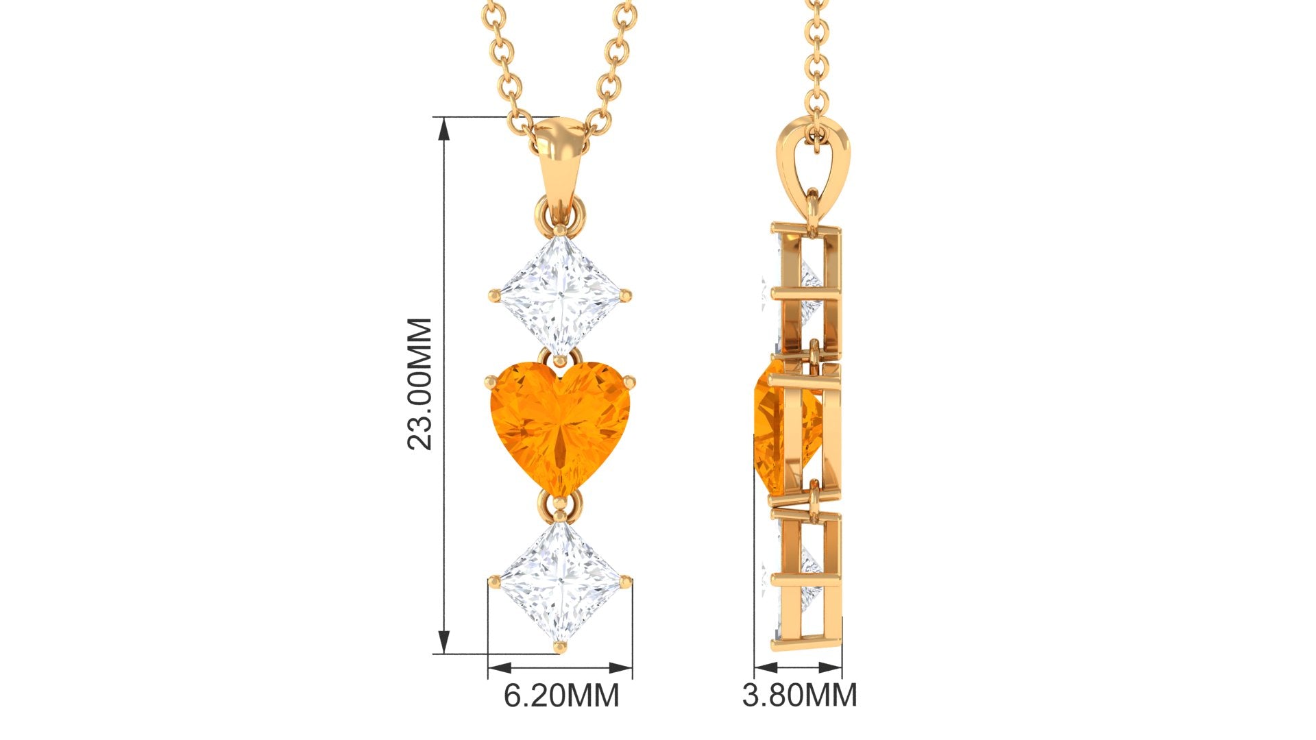 Heart Shape Fire Opal Drop Pendant with Princess Cut Moissanite