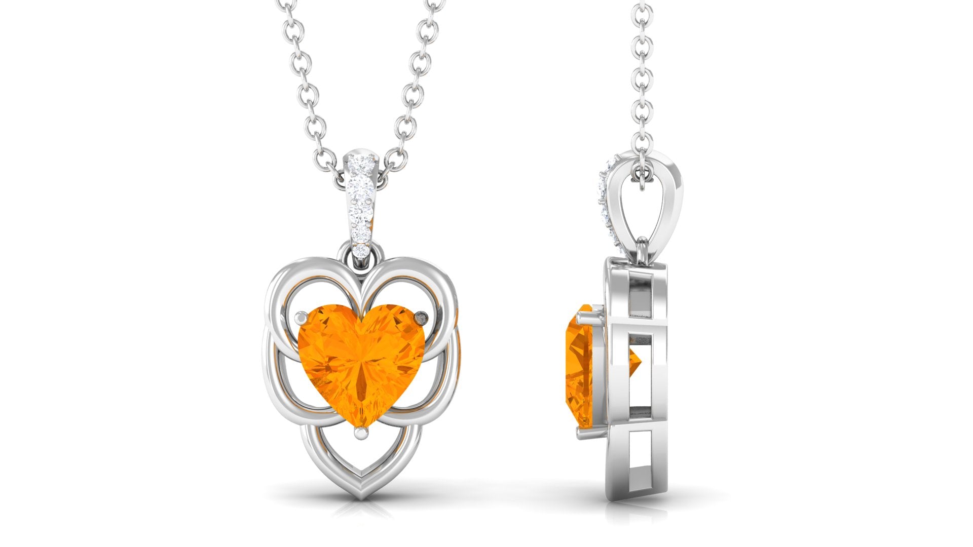 Heart Shape Fire Opal Leaf Pendant with Diamond Accent Bail