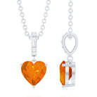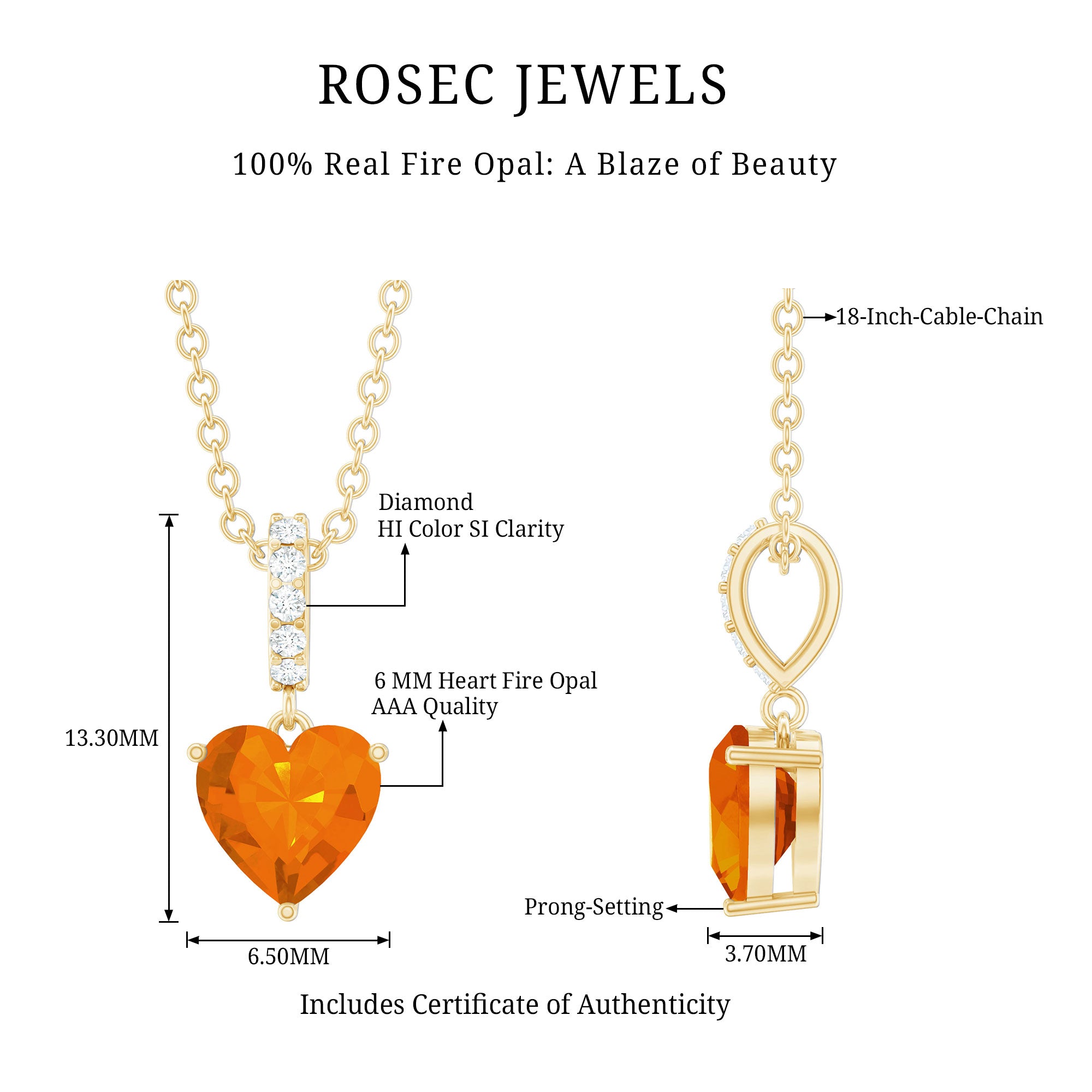 Heart Shape Fire Opal Solitaire Pendant with Diamond Accent Bail