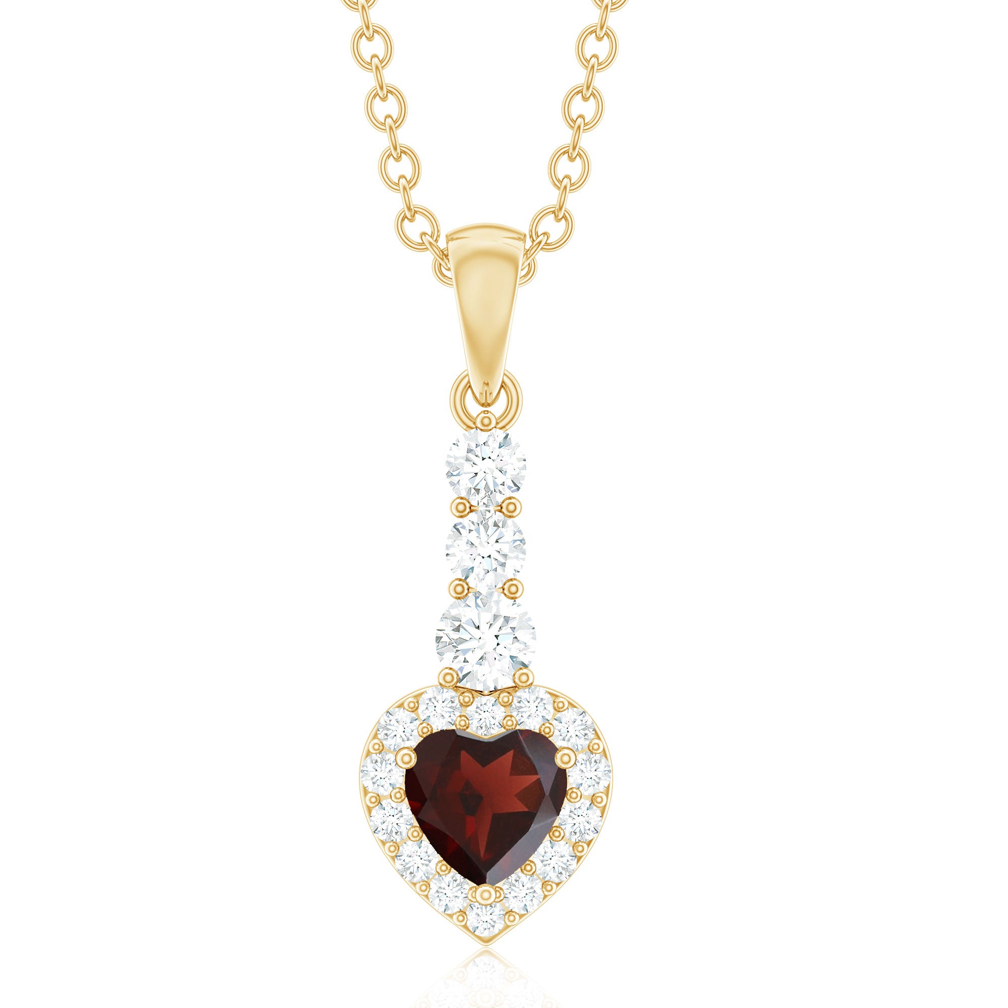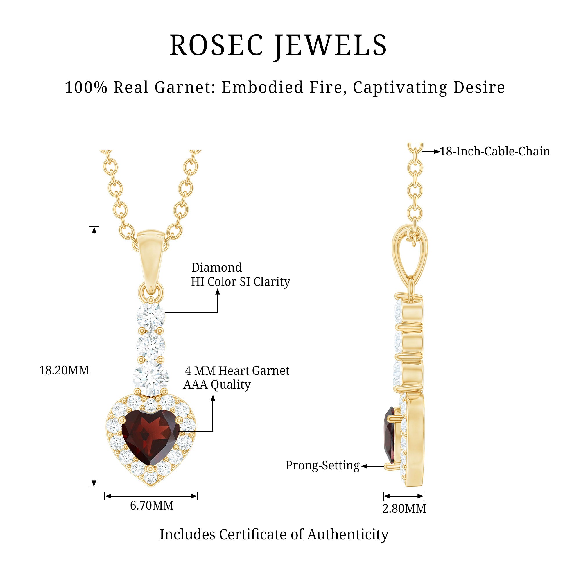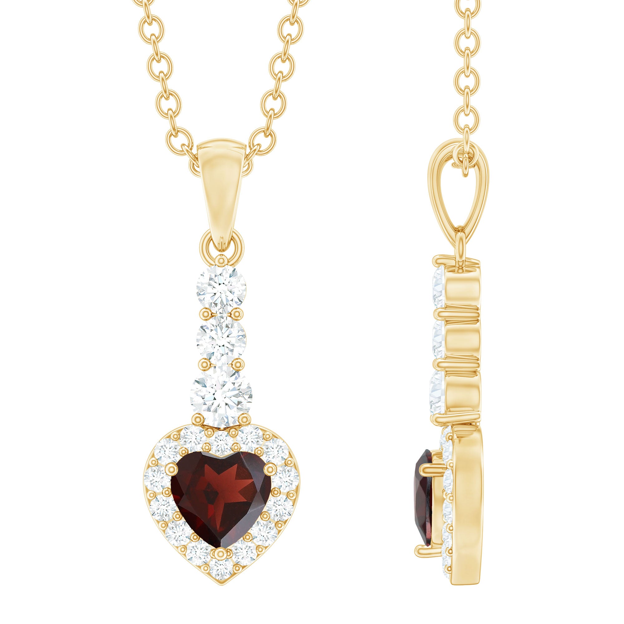 The beautiful Heart Shape Garnet in Prong Setting with Diamond on the Heart frame and studded over the top makes this Heart Pendant necklace an eye-catching piece of jewelry that for sure you will let you get lots of compliments. This Garnet Necklace also makes a suitable bridal jewelry option.