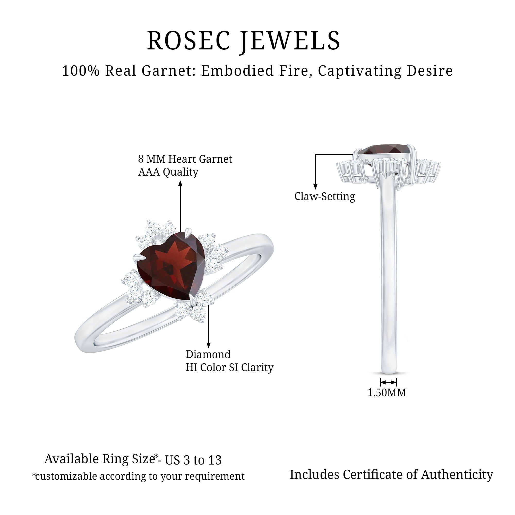 Heart Shape Garnet Engagement Ring with Diamond Accent