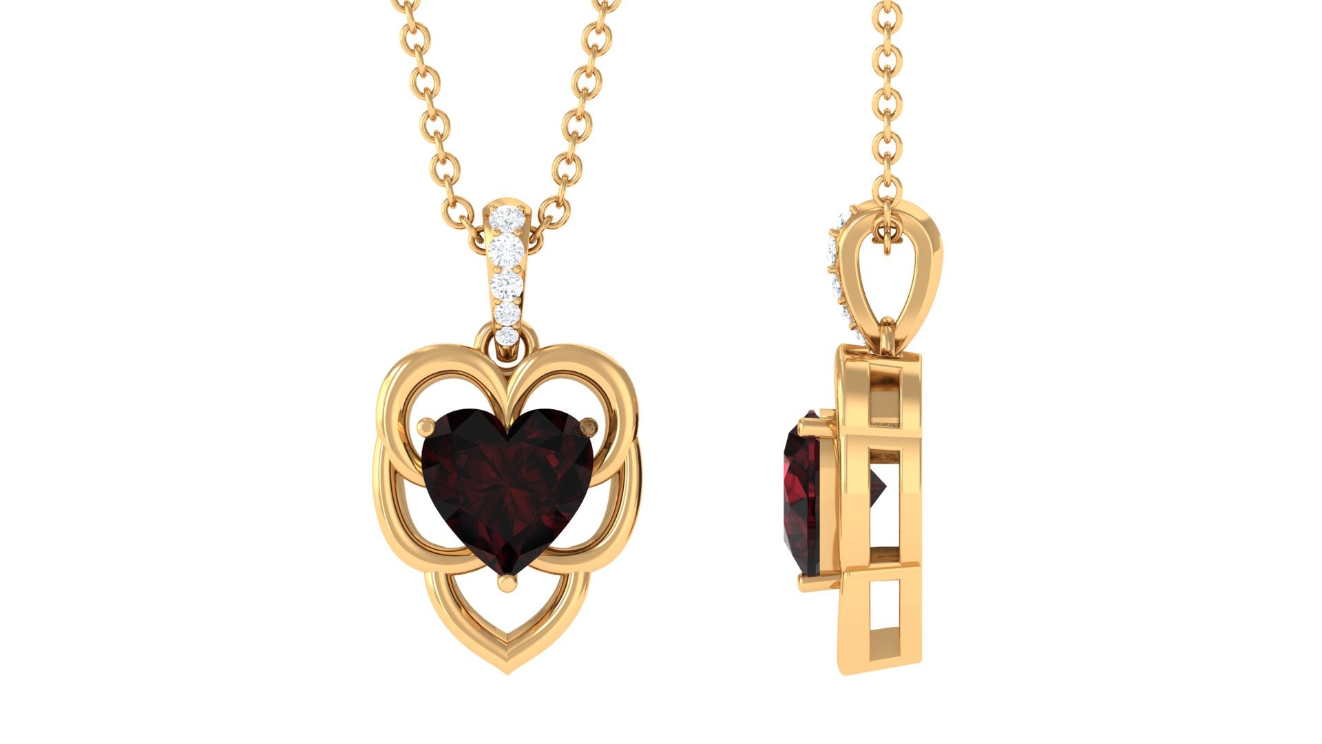 This elegant Garnet Pendant is a must-have jewelry for your collection. The center stone shines with a Heart Shape Garnet and Diamond on the top and a beautiful design steals away all the attention. Held securely in Prong Setting this Heart Pendant is hard to miss and is a perfect partner for the rest of your day.