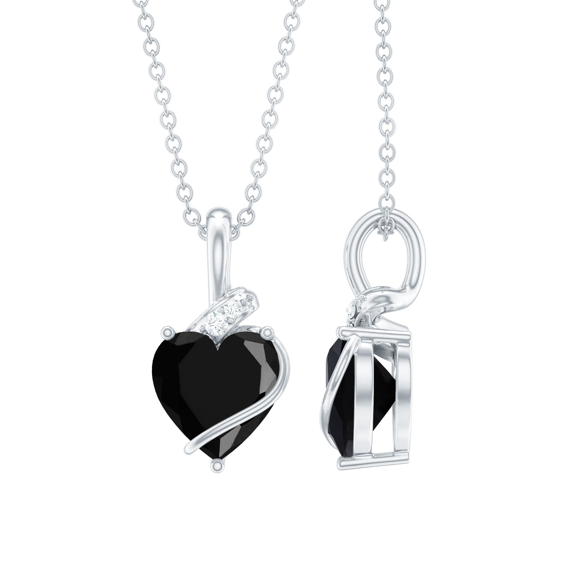 Heart Shape Lab Grown Black Diamond Necklace with Accent