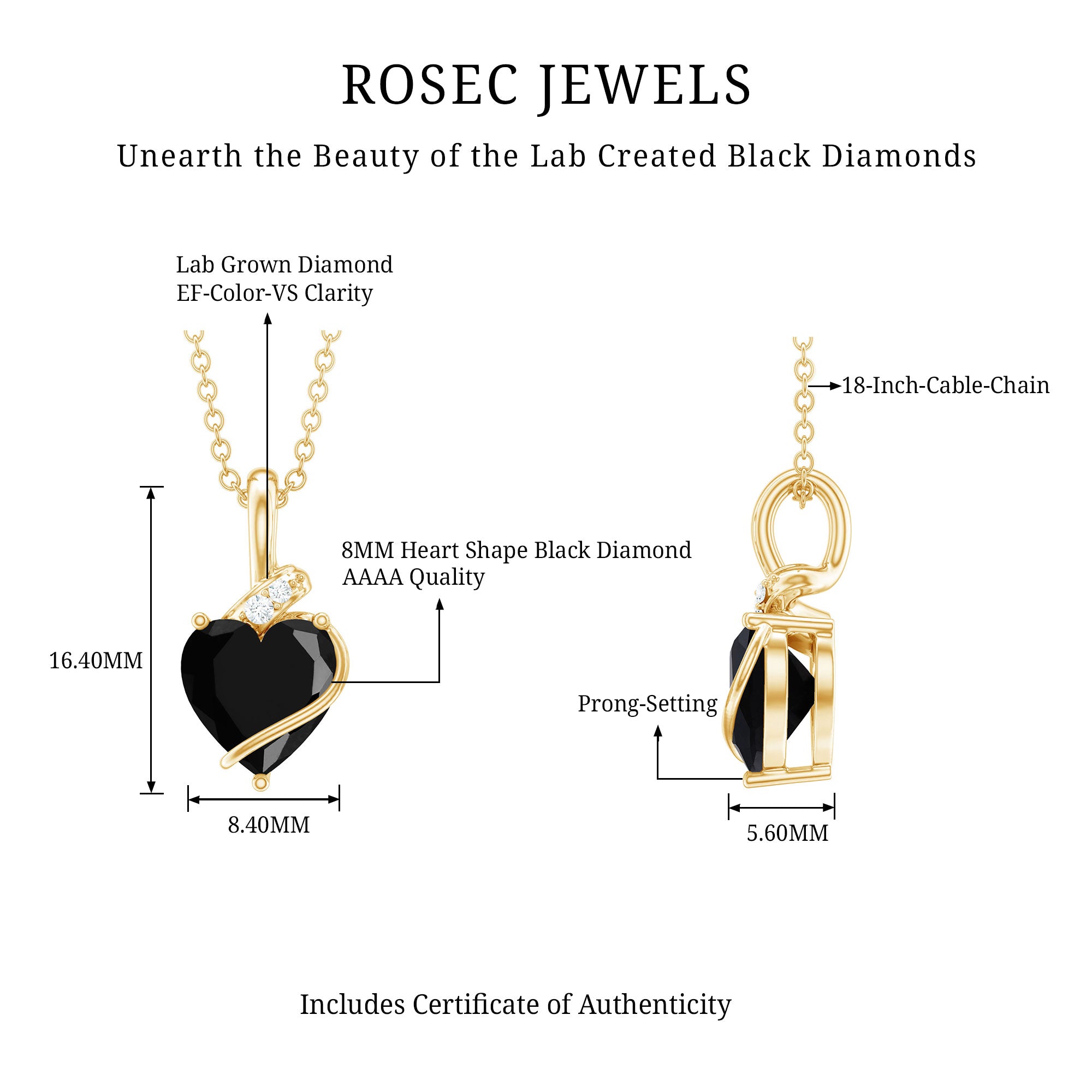 Romanticize the moment by presenting this adorable Heart Pendant Necklace. This elegant piece effortlessly captures the essence of love and sophistication. Meticulously crafted, the solitaire pendant showcases a 8 mm Heart Shape Lab Grown Black Diamond set in Prong Setting, adorned with sparkling White Lab Grown Diamond gemstones for added brilliance. Unveil the epitome of luxury and ethical elegance from Aaaa Quality Black Diamond and Ef-Vs Quality Diamonds, where each piece reflects our commitment to quality and contemporary design. Elevate your gift-giving with this Black Diamond Pendant that embodies love and celebration. Shop now for an unforgettable present that captures the essence of a precious moment.