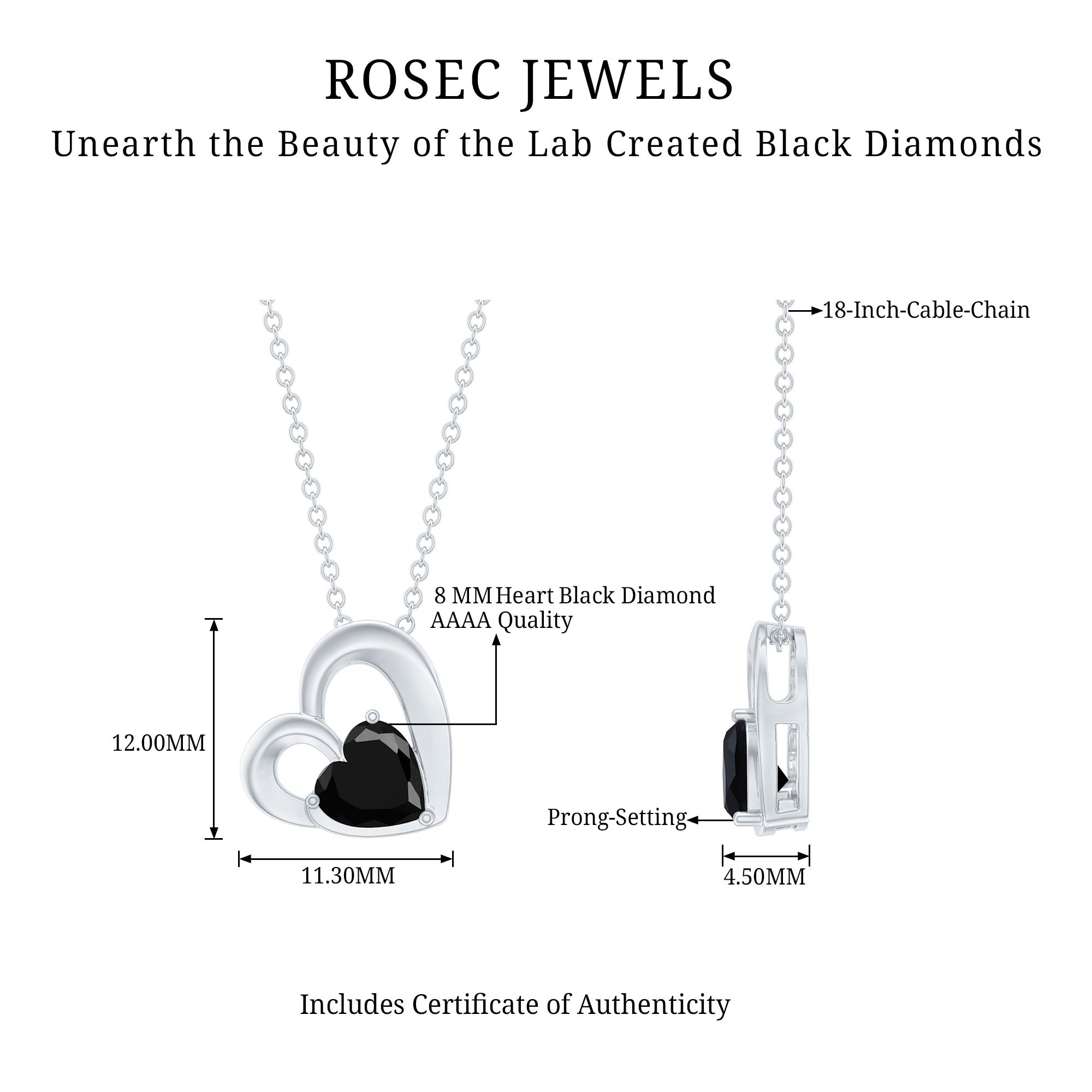 Romanticize the moment by presenting this Heart Pendant Necklace to your lady love. This Solitaire Pendant is adorned with a tilted placed 8 mm Heart Shape Black Diamond (Lab Grown) set in a secure prong setting. The delicate metal heart design accentuates the timeless allure of love, making it perfect for celebrating milestones or expressing care. Meticulously curated by Rosec Jewels, known for its commitment to quality and innovation, this Aaaa quality Black Diamond Pendant is a testament to refined craftsmanship.
