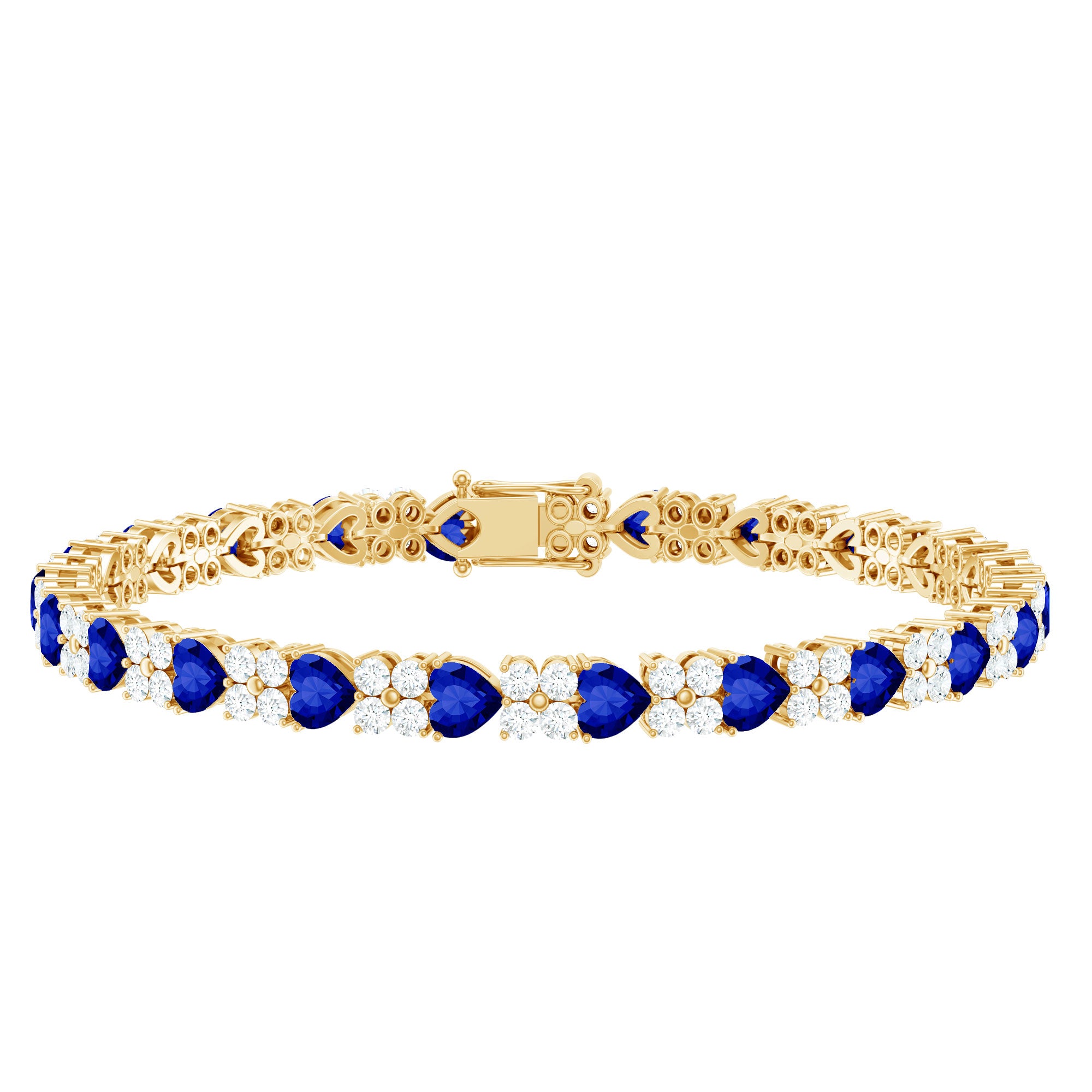 Heart Shape Lab Grown Blue Sapphire and Diamond Tennis Bracelet