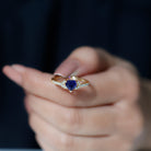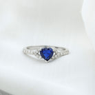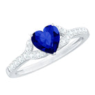 Created Blue Sapphire Heart Engagement Ring With Diamond Accent