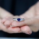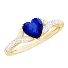 Make her fall in love with you by presenting this Heart Engagement Ring, a masterpiece that deserves to be on her finger. The centerpiece showcases a Heart-Shaped Created Blue Sapphire meticulously set in prong setting while the shank sparkles with Diamonds exhibiting an infinite shimmer. The AAAA Quality of Created Blue Sapphire ensures great durability and unmatchable brilliance, an ideal piece to embrace your everyday look. This unique and captivating heart shaped ring exudes a subtle elegance making it a perfect ring for those who love the extraordinary.