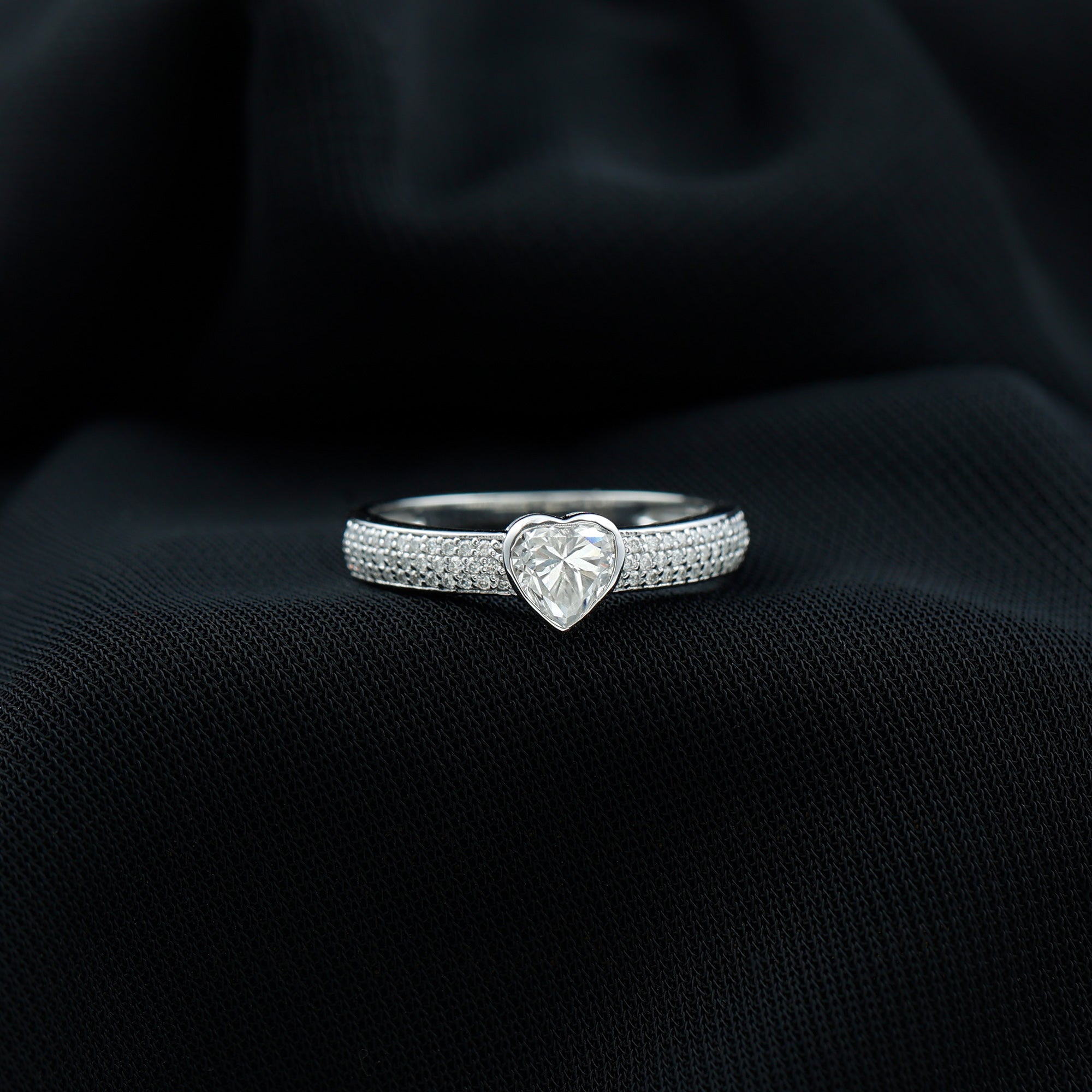 Heart Shape Lab Grown Diamond Solitaire Ring with Side Stones