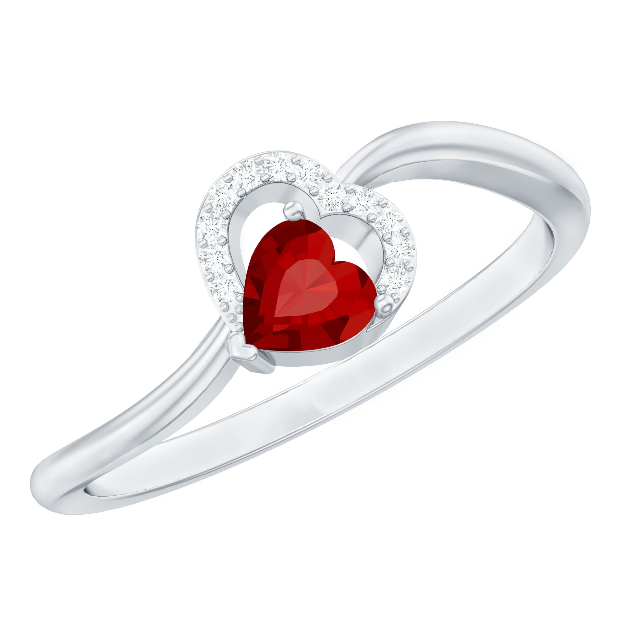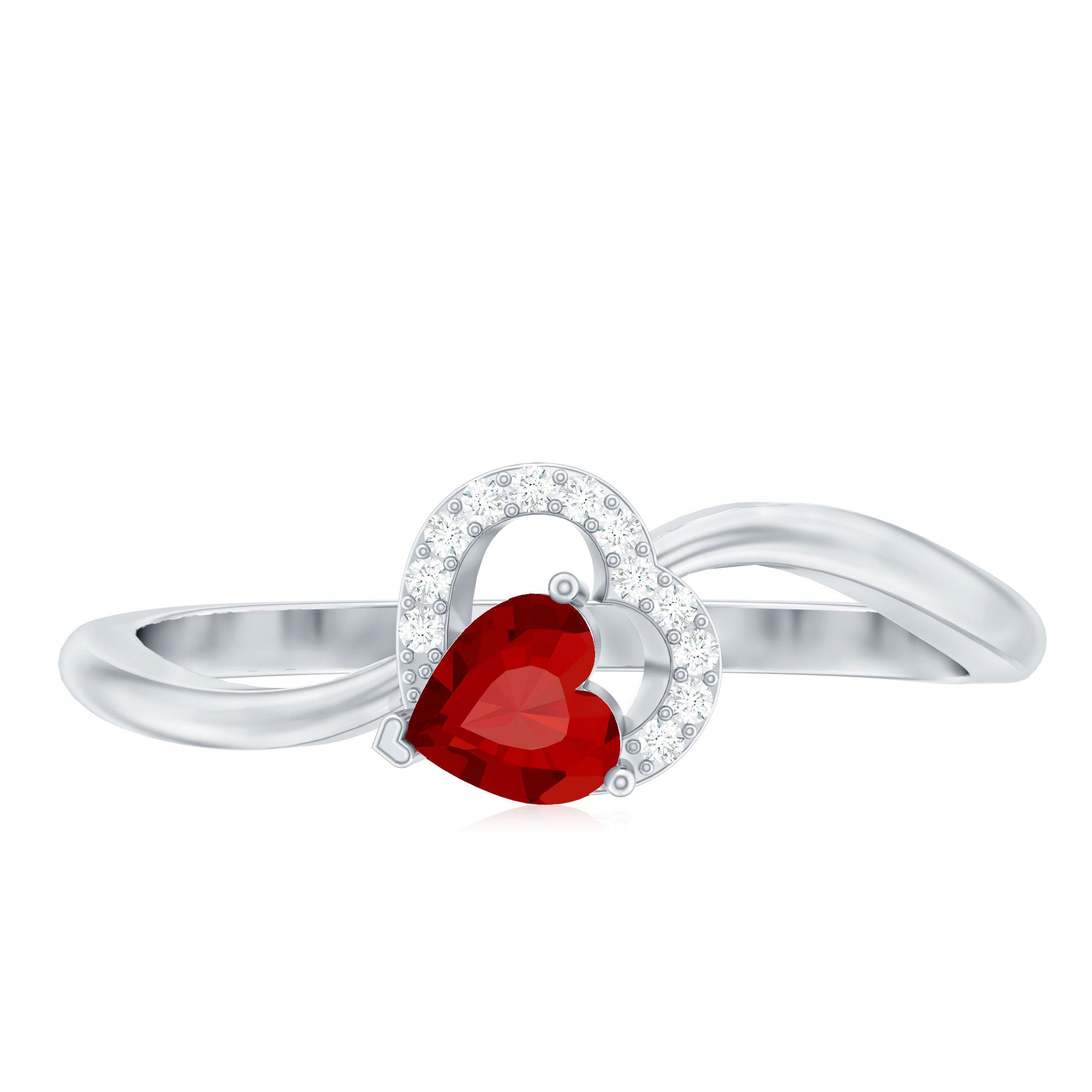 Heart Shape Lab Grown Ruby and Diamond Twisted Promise Ring