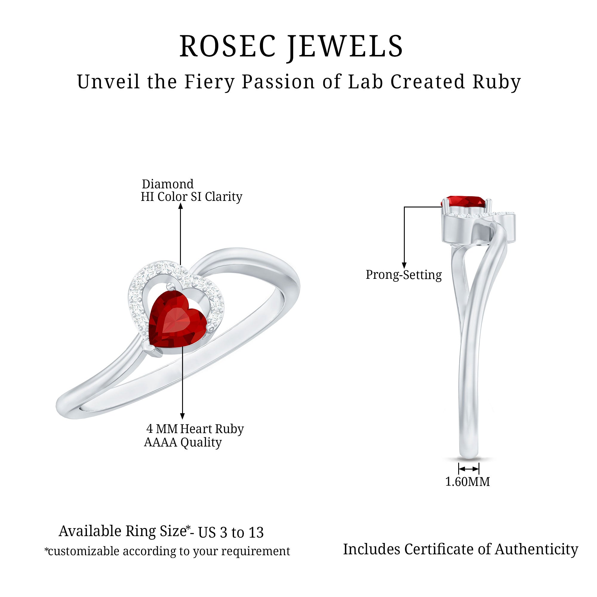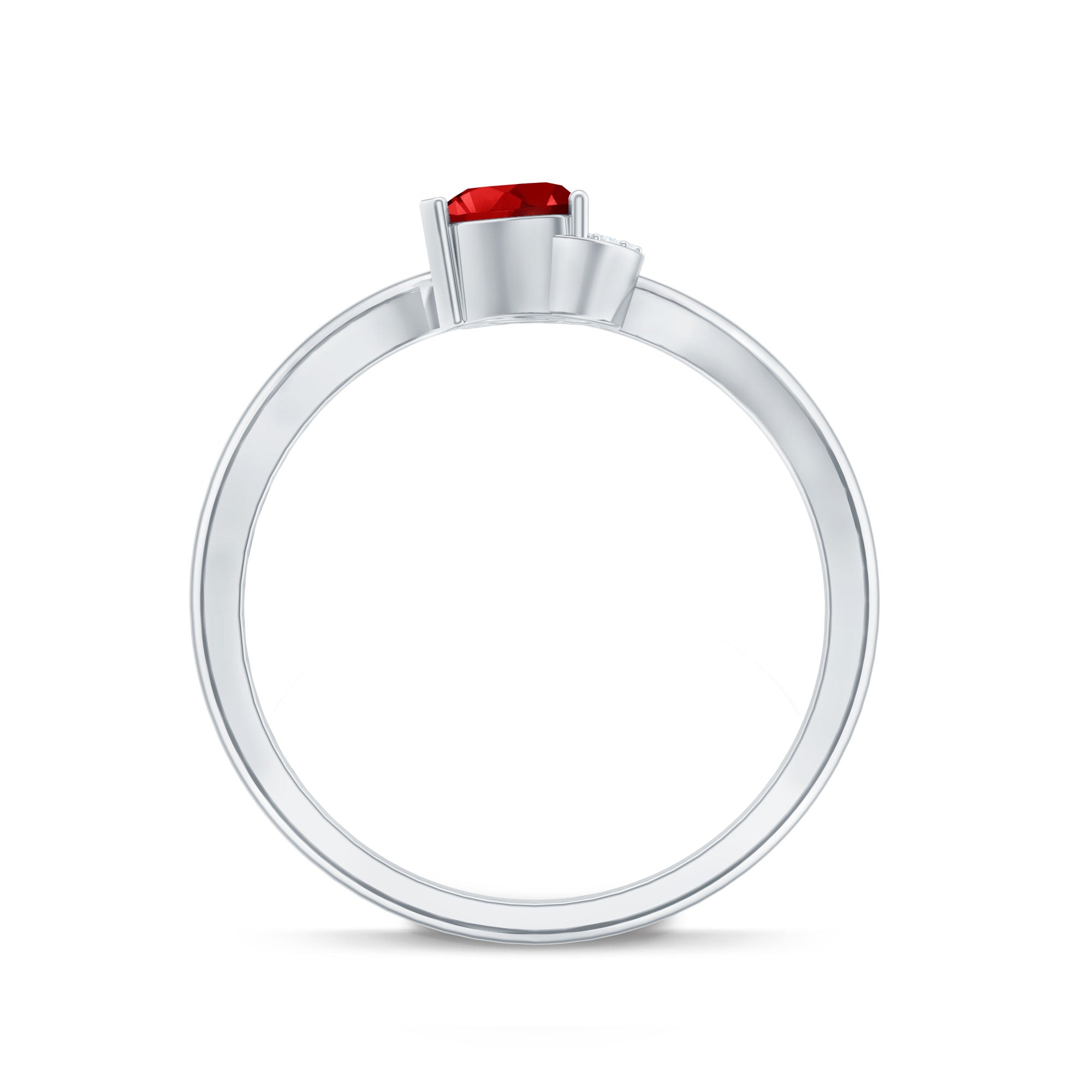 This stunning promise ring features a heart shaped created ruby and shimmering Diamond stones studded on the heart design. The vibrant red color of the simulated ruby is complemented by the brilliance of the Diamond, which adds an extra level of sparkle and shine. With its romantic design and exceptional quality, this created ruby promise ring is a beautiful and meaningful accessory that symbolizes love and commitment.