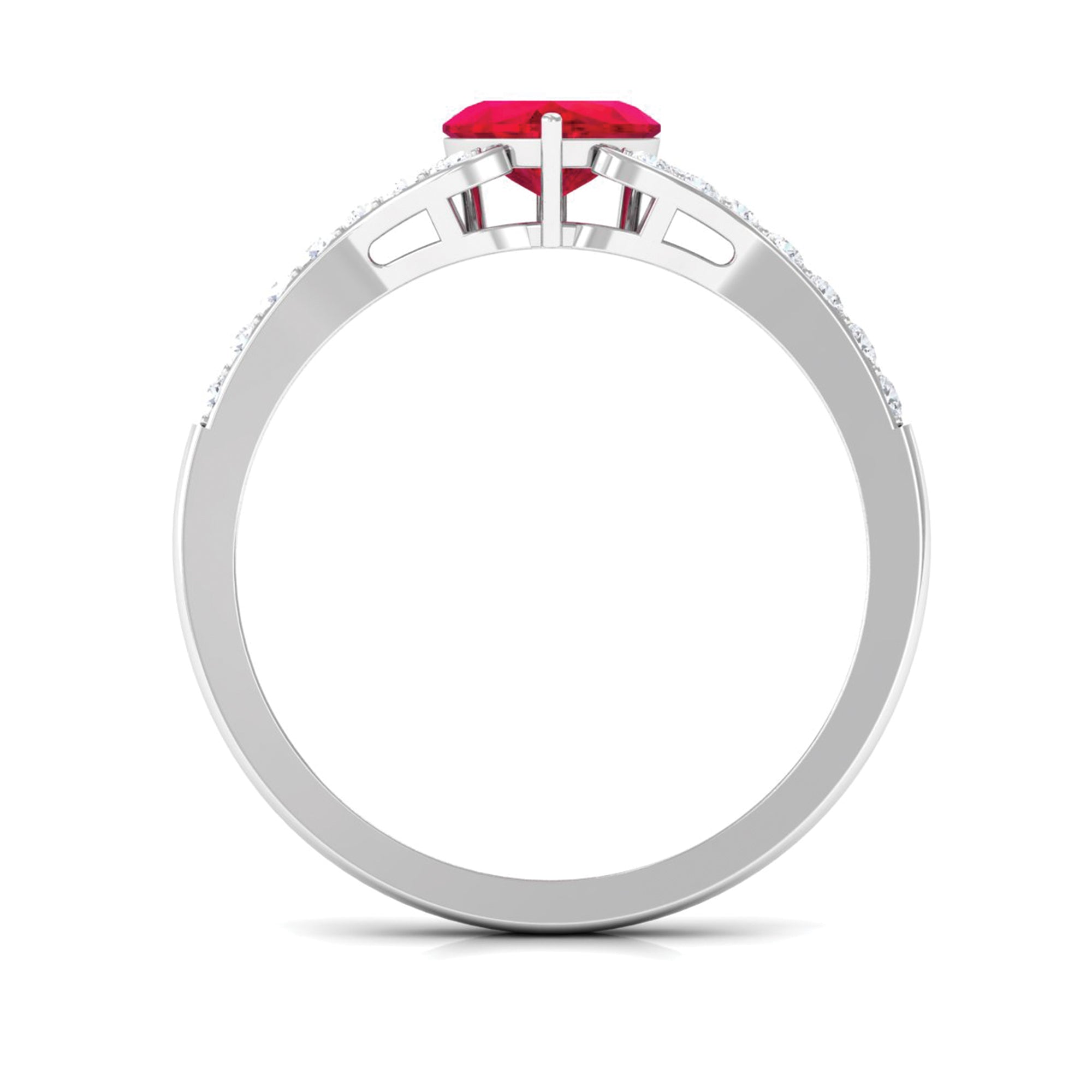 Heart Shape Lab Grown Ruby Engagement Ring with Diamond