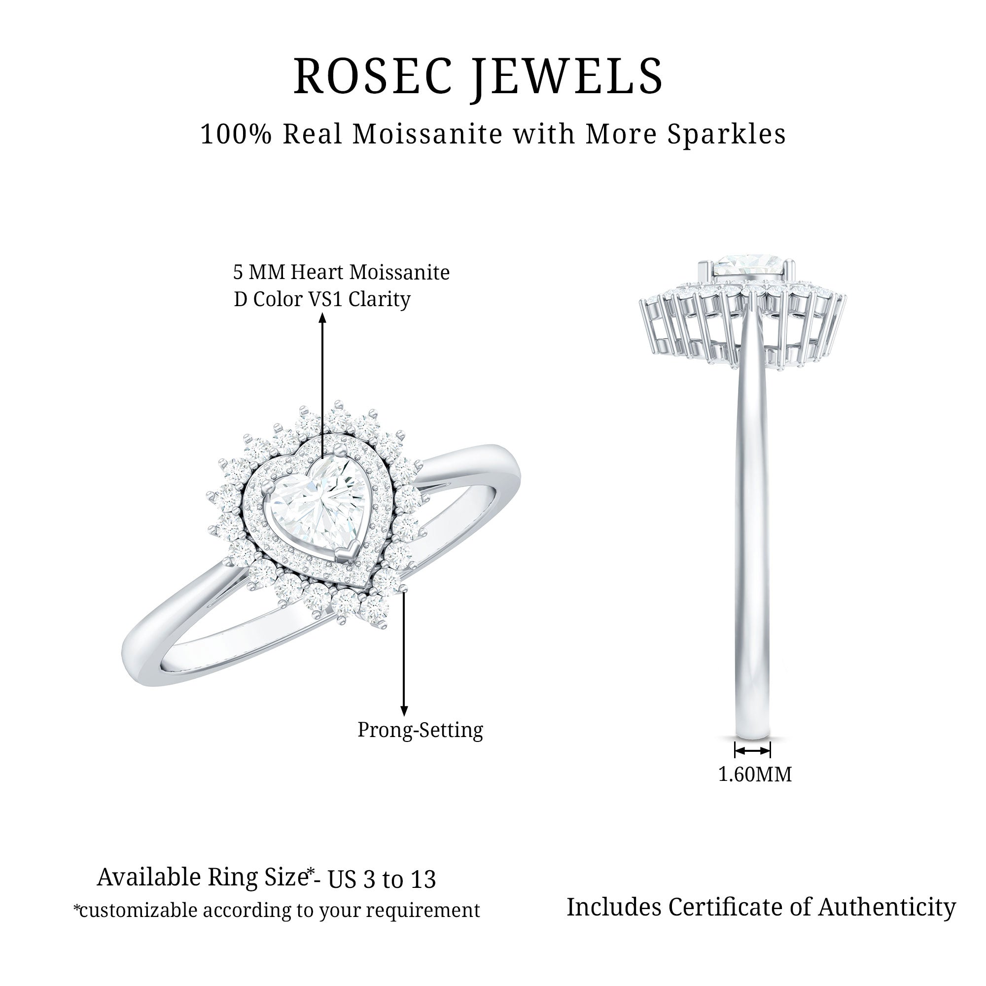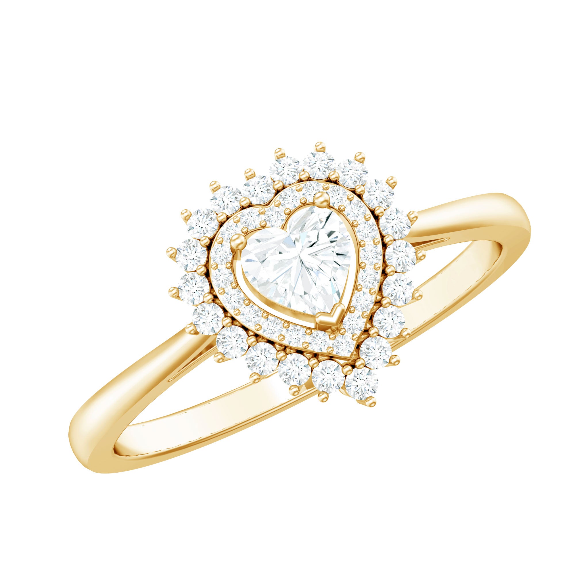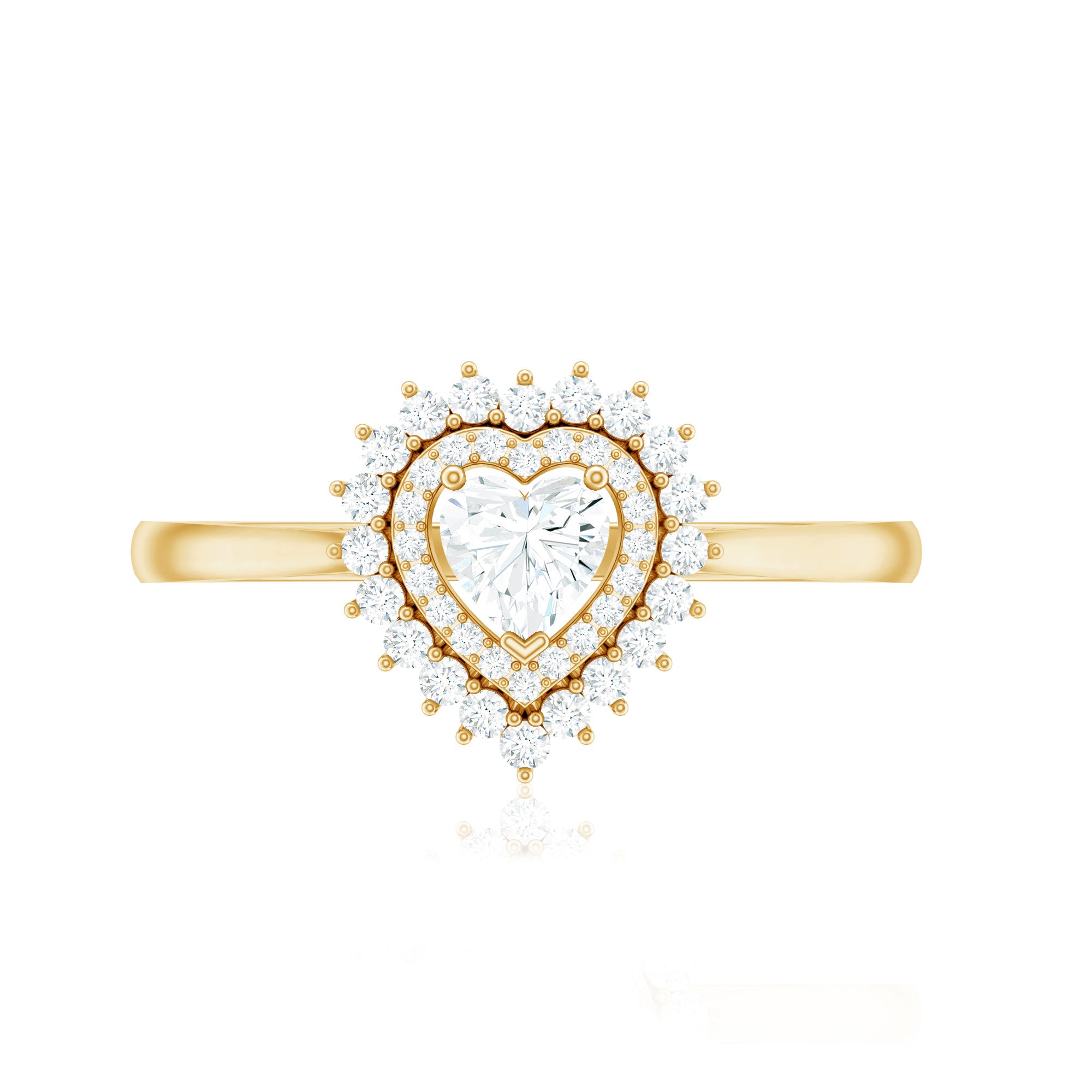 Heart Shape Moissanite Engagement Ring with Double Halo