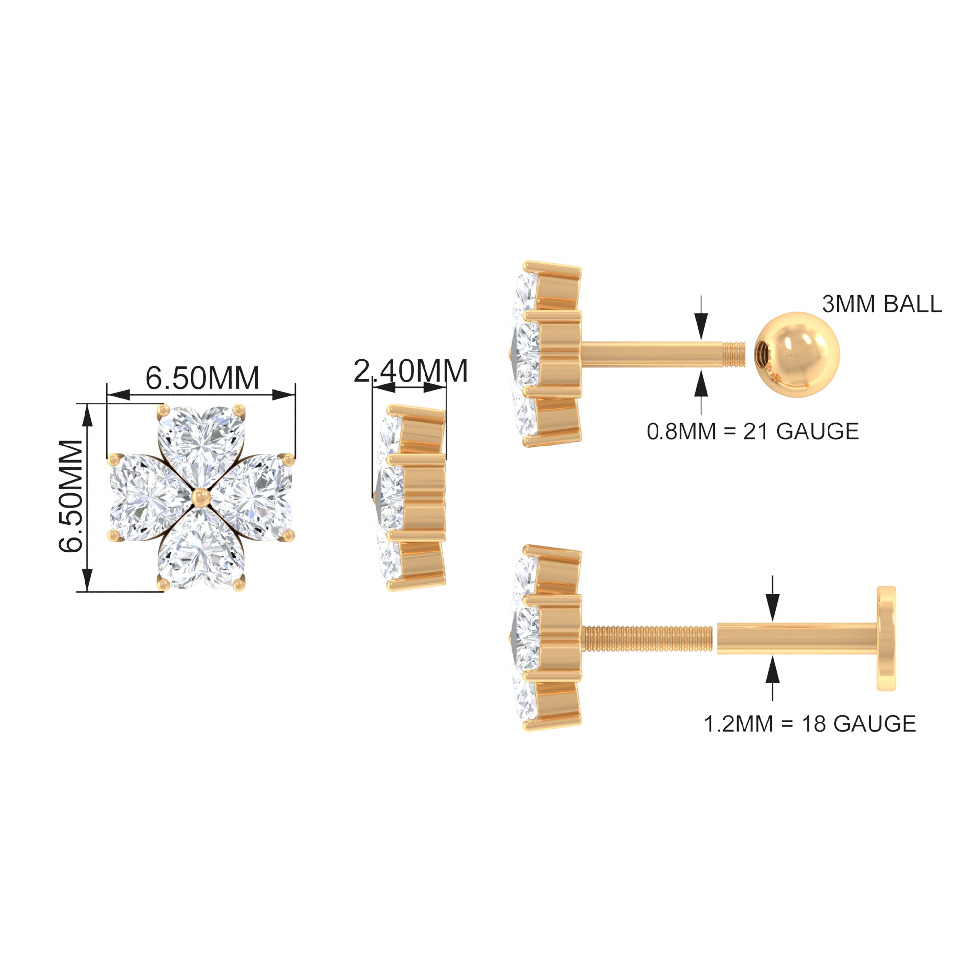 The Moissanite Flower Conch Earring is an elegant and understated piece of jewelry. Made of Real Gold, the earring features Heart Shape Moissanites secured in Prong Setting assembled in a floral design. The minimalist design of this earring makes it a versatile accessory that can be worn with a variety of styles, whether you prefer a classic or more modern look.