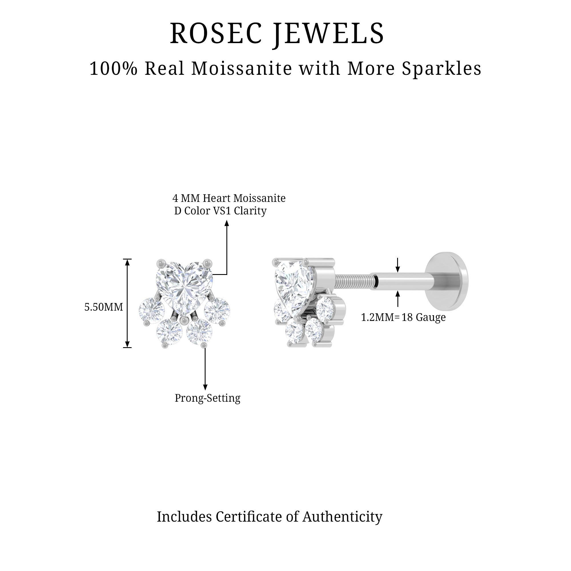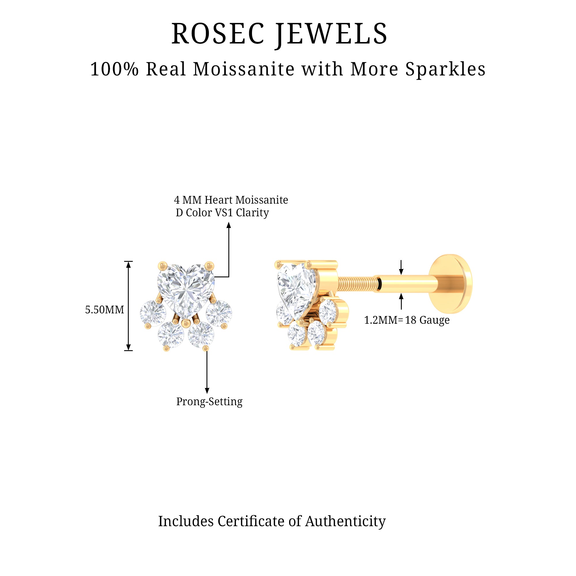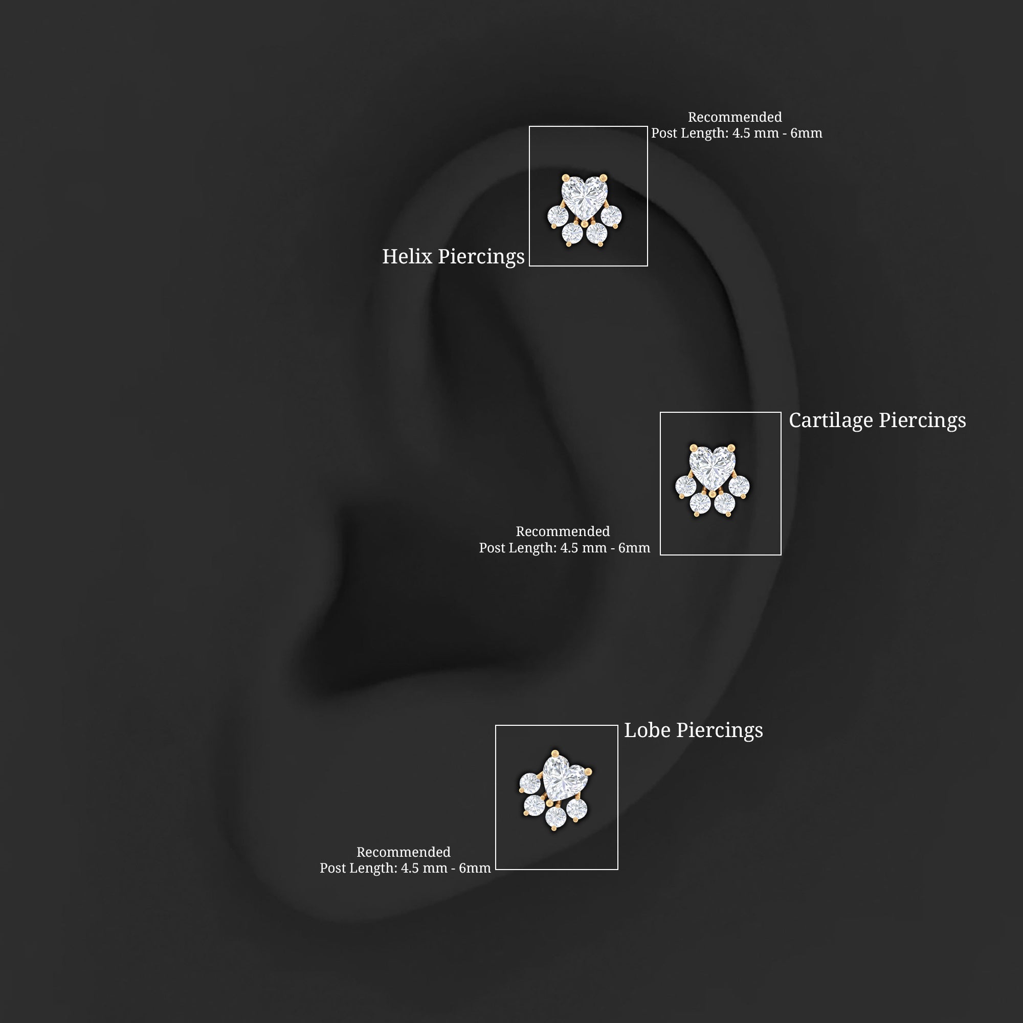 Add a touch of cuteness to your jewelry collection with this Dog Paw Print Earring. The adorable design features a Dog Paw Print assembled from sparkling Certified Heart Shape Moissanite and small Round Cut Moissanite set in Gold. You can style this earring on your Rook, Helix, Cartilage, or Upper Lobe Piercing and choose between a Flat Back or Ball Back Closure.