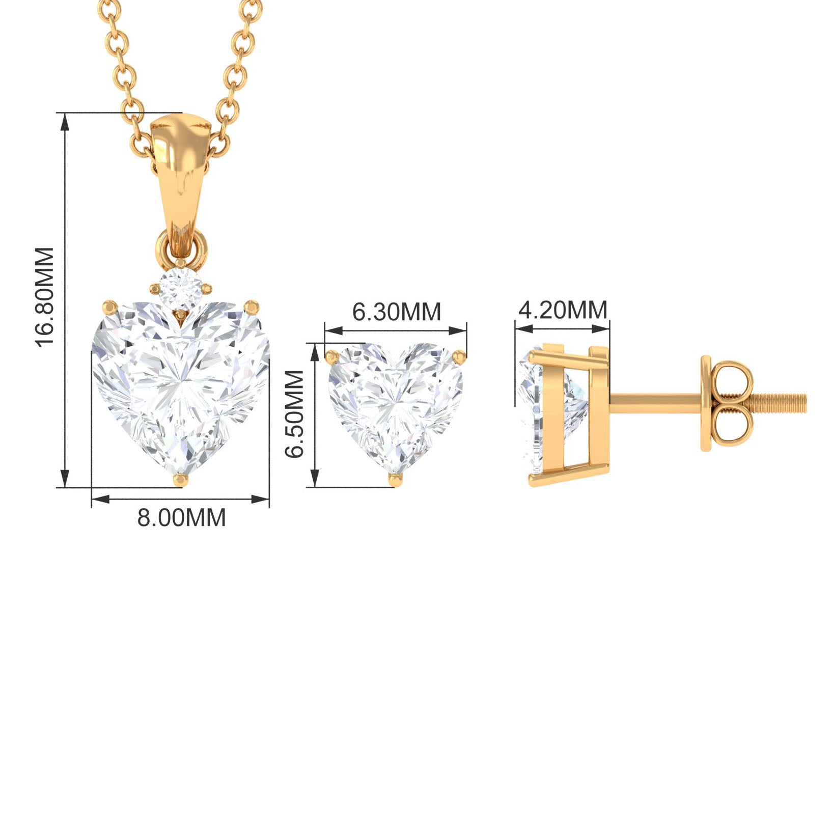 Express your love with the timeless beauty of the Heart Shape Moissanite Solitaire Pendant and Earrings. This stunning set features an 8x8 MM sparkling heart-shaped moissanite center gemstone in a classic solitaire setting. The earrings come with the same sparkling moissanite stone in a stud setting. This elegant set is perfect for any occasion, from a romantic dinner to a special event. It is also a beautiful gift for a loved one on Valentines Day, an anniversary, or a birthday.