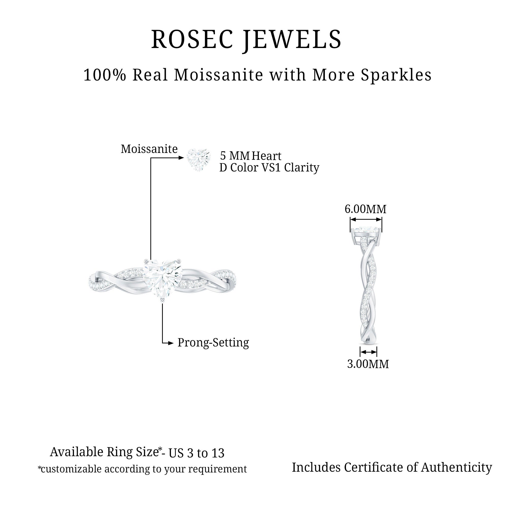 Celebrate love and commitment with this beautiful Moissanite Braided Ring, a piece designed to symbolize romance, elegance, and timeless beauty. The Commitment Ring features a sparkling 5 MM heart shaped moissanite set in secure 3-prong setting, making it the perfect centerpiece for this romantic design. One strand of the braided band is adorned with dazzling round moissanites, while the other strand is made of plain metal, creating a striking contrast that highlights the brilliance of each stone. Crafted with D color and VS1 clarity moissanite, this Heart Promise Ring captures light beautifully and offers exceptional sparkle, making it look stunning from every angle. The thoughtful design of the braided band not only represents the intertwining of two lives but also adds a modern and stylish touch that works perfectly as a promise ring or pre engagement ring. Each gemstone undergoes strict quality checks and comes with certification to ensure authenticity and lasting beauty. Comfortable for daily wear yet elegant enough for special occasions, this Heart Moissanite Ring makes a meaningful gift for anniversaries, birthdays, or moments when you want to show someone how much they mean to you.