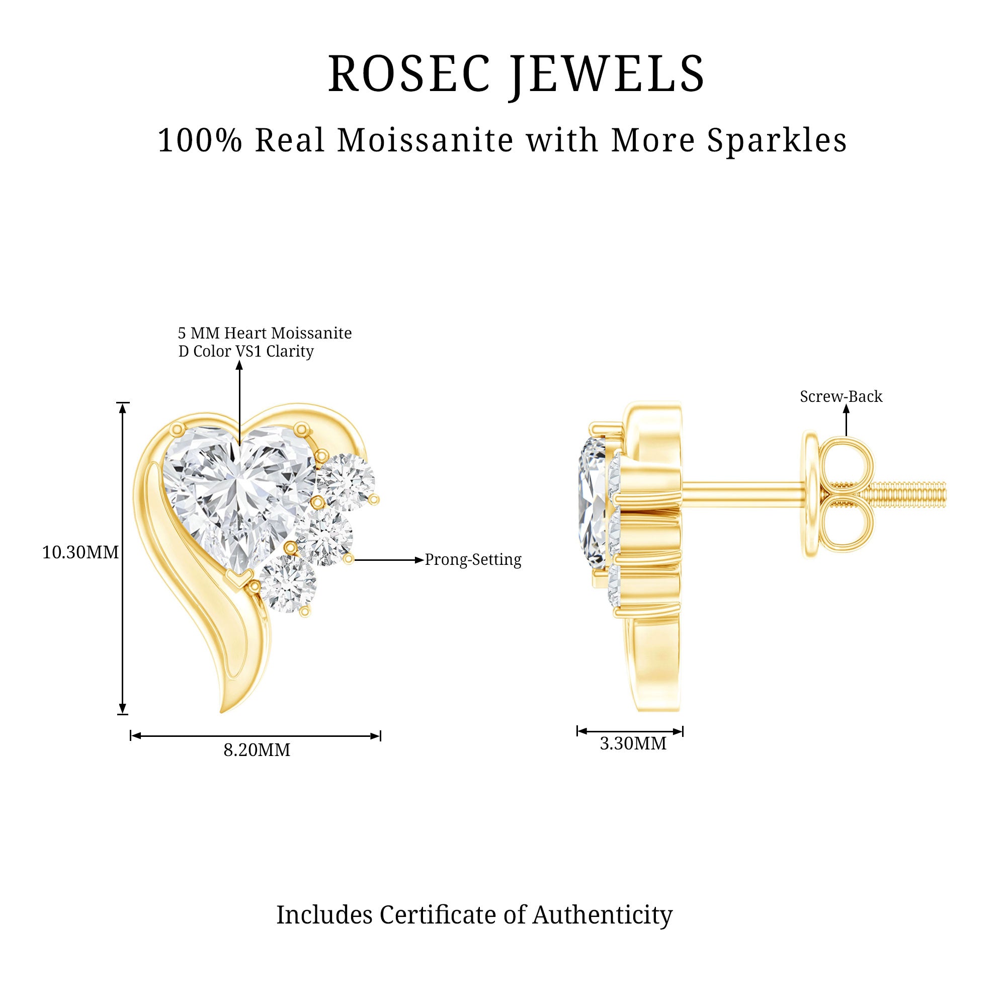 Fall in love with everyday sparkle through these charming Moissanite Stud Earrings that blend simplicity with just the right amount of shine. Designed for easy styling, these studs feature a sweet mix of heart and round shaped moissanite stones that catch the light beautifully and add a subtle glow to your look. The thoughtful pairing of these two classic shapes gives the earrings a playful yet balanced feel, making them easy to dress up. Crafted in high-quality gleaming metal, these Heart Stud Earrings are made to last while keeping comfort in mind. The secure screw back closures ensure they stay put all day, whether you are heading to work, meeting friends, or enjoying a special evening out. No fuss, no constant adjusting -just effortless wear. Moissanite stones are known for their impressive sparkle and durability, making these Unique Stud Earrings a smart choice for daily use. Their versatile design works perfectly with casual outfits, office wear, or dressier looks, so you will find yourself reaching for them again and again. Lightweight and easy to wear, these earrings add a little shine without trying too hard.