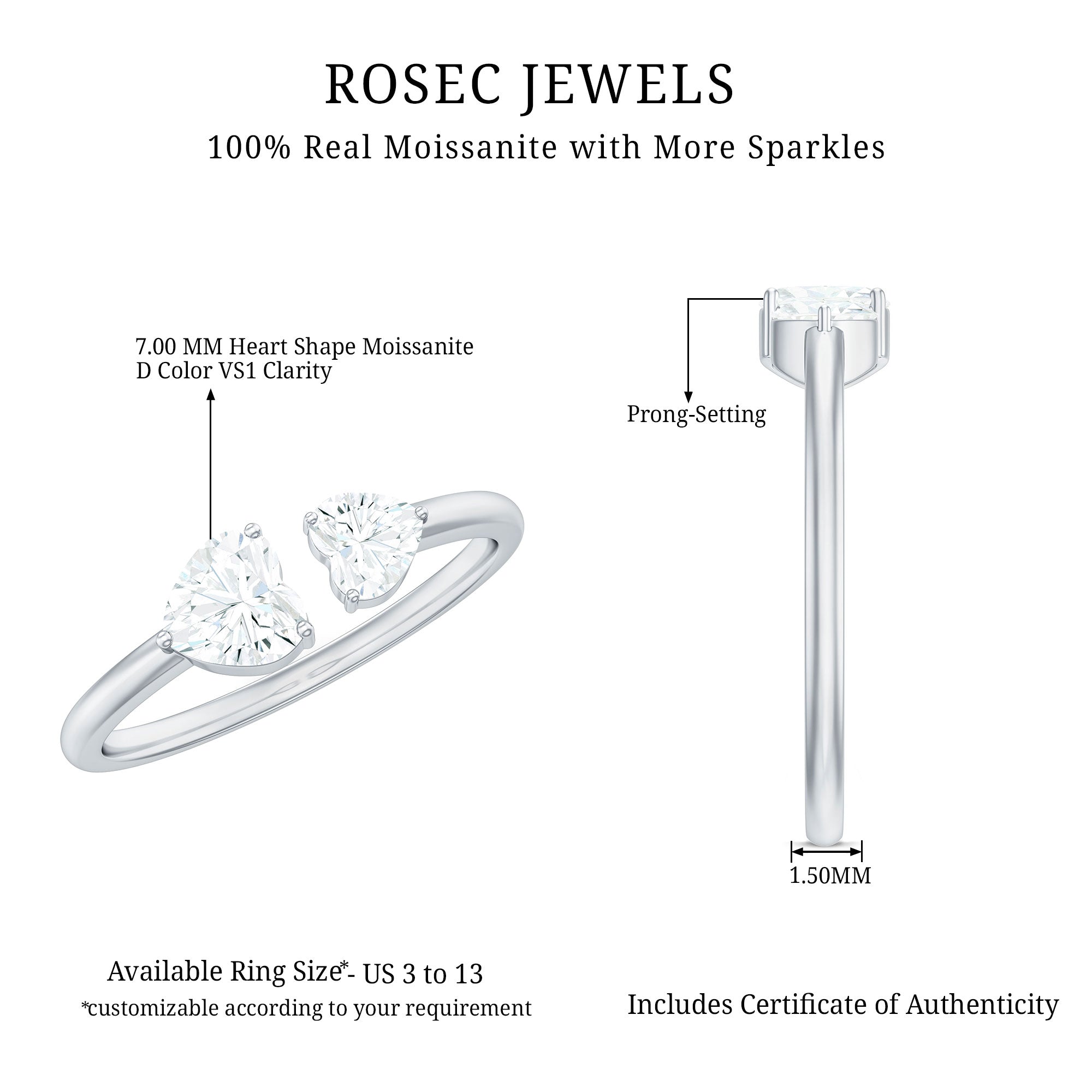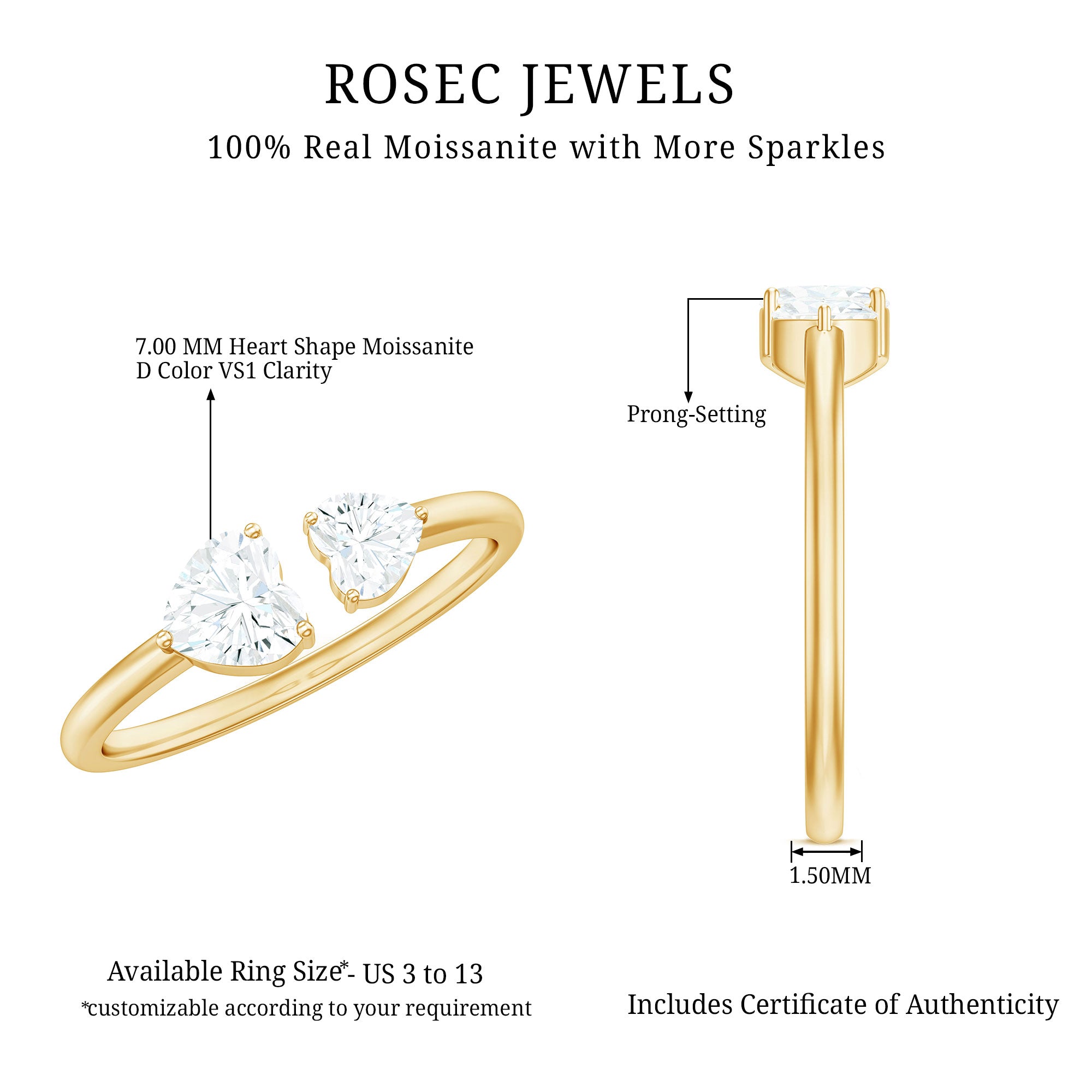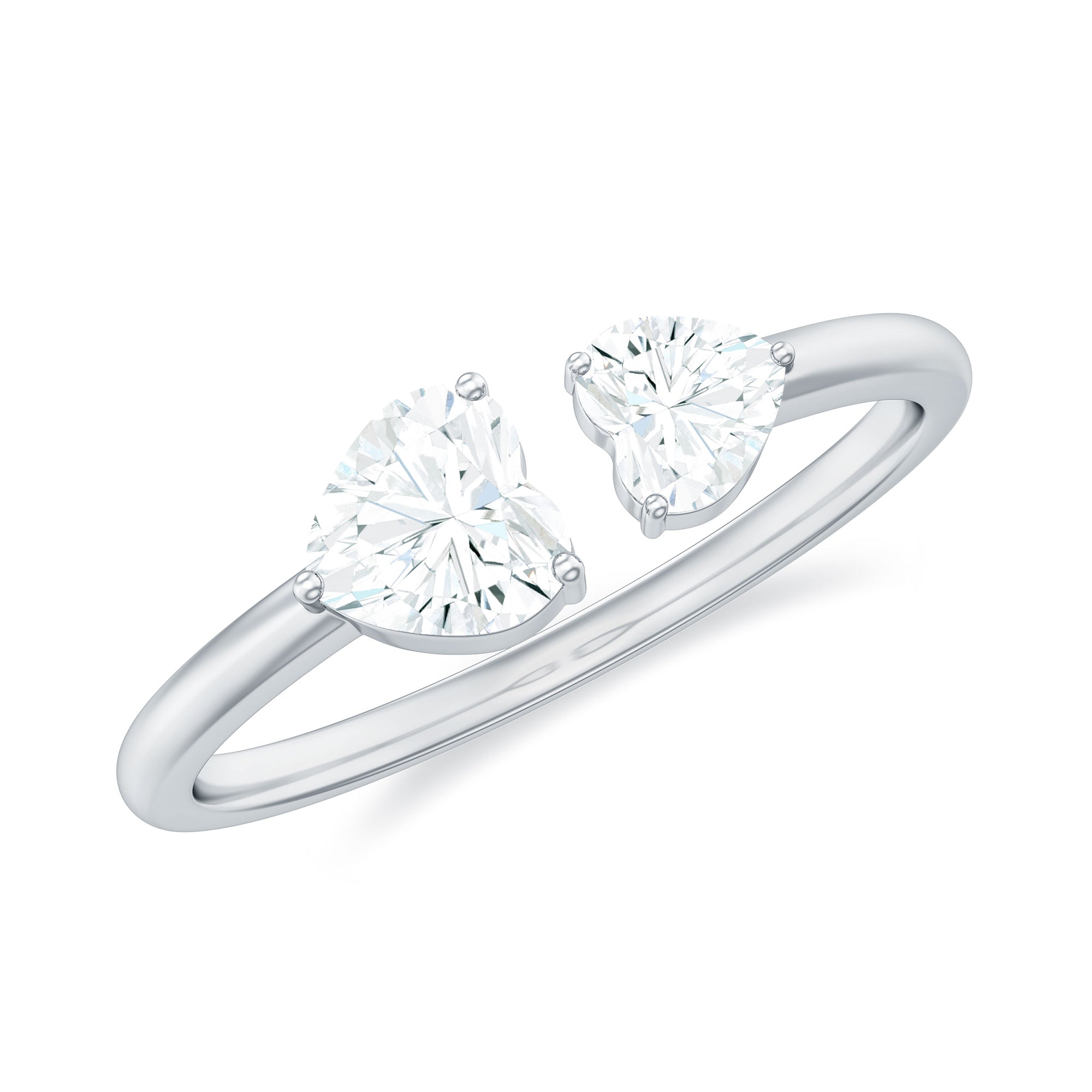 Capture double the love with this Two Stone Cuff Ring. Two sparkling Heart Shape Moissanite gemstones embrace your finger in a symbol of romance and connection, making a stunning statement of affection and elegance.